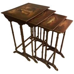 Early 20th Century Nest of 4 Lacquered and Decorated Tables