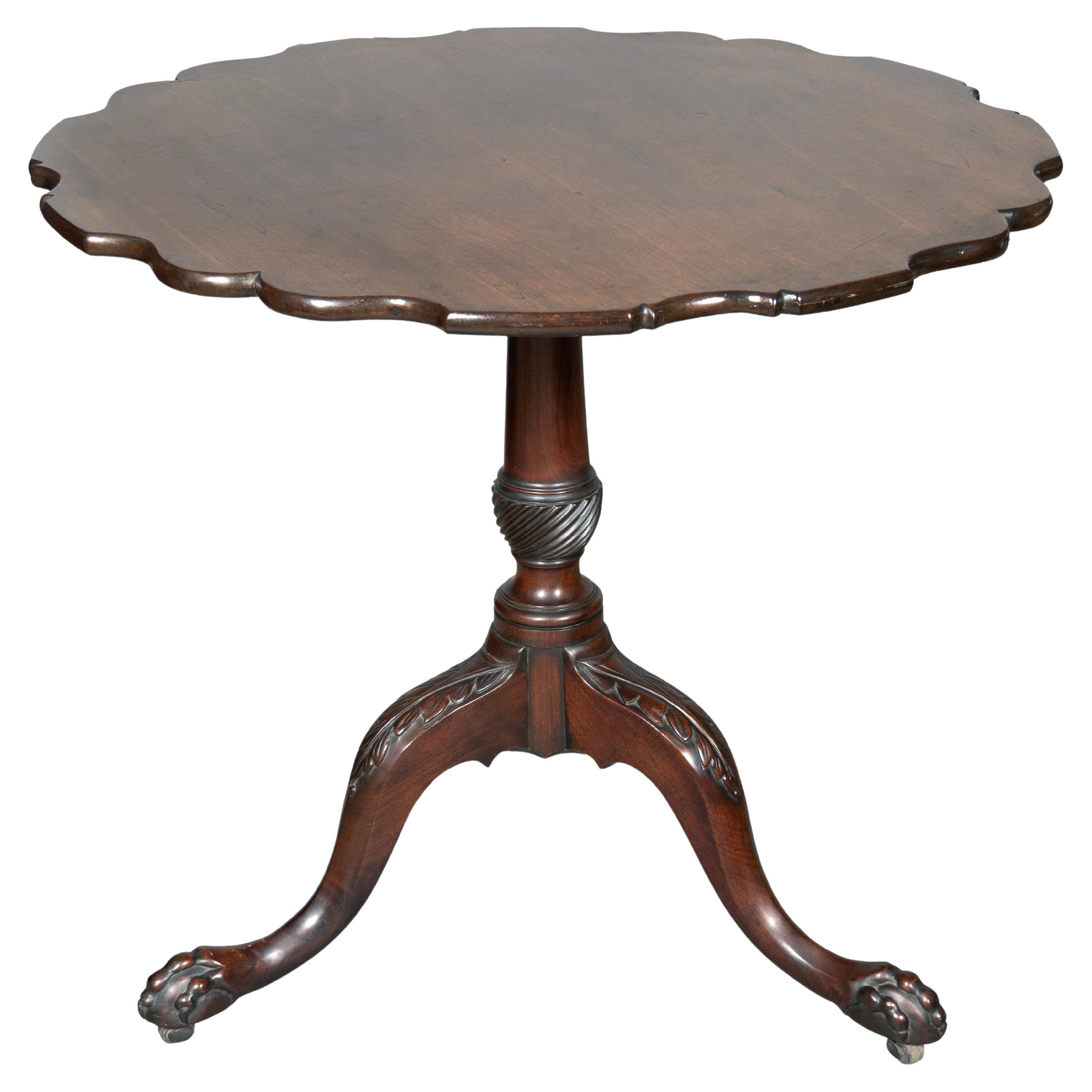 This is an elegant hand-crafted mahogany George III multifunctionality corner table. During this time, corner tables became popular, due to their multi-functional and space-saving characteristics. They easily transform into a square multi-use: tea table, card table, reading table, tea table, etc. Completely utilitarian and space-optimizing, it could be placed in any room and provide many uses. It features an isosceles triangle top with a rear drop leaf. The drop leaf, supported by a gate leg, swings out to expand into a square surface. An oval-shaped brass escutcheon on the plain frieze hints at a compartment. Indeed, opening the lock allowed the top to lift and reveal storage space. It rests on four marlborough legs, another stylistic element of the era. One can use it in a living area and store board games in the storage compartment or use it as a desk or tea table and put it away in a corner when done. Regardless of how it is used or where it is located, it will be a timeless classic of Georgian history...
