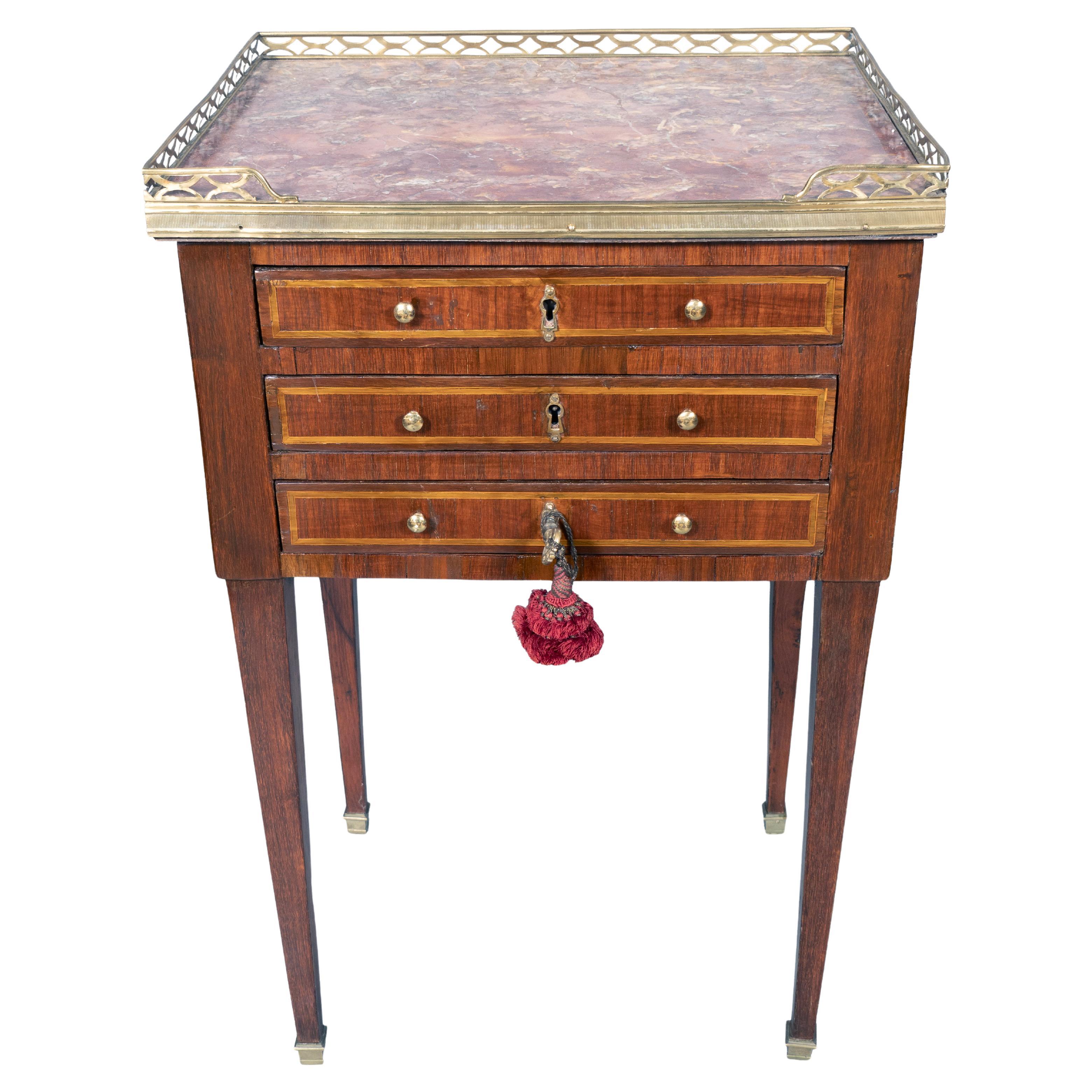 The exterior is adorned with geometric inlay panels, showcasing the artistry of Italian cabinetmakers of the period. The piece is supported on turned baluster legs connected by a serpentine stretcher, ensuring both stability and visual appeal. Its compact yet refined proportions make it a versatile addition to a study, library, or living space, offering both storage and display value.