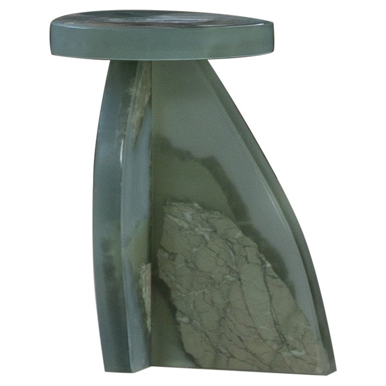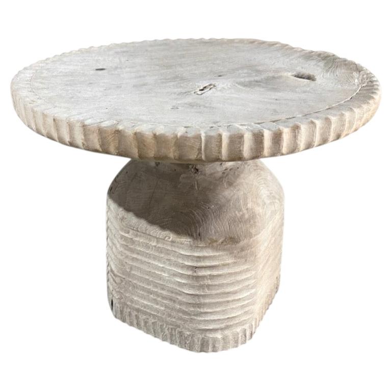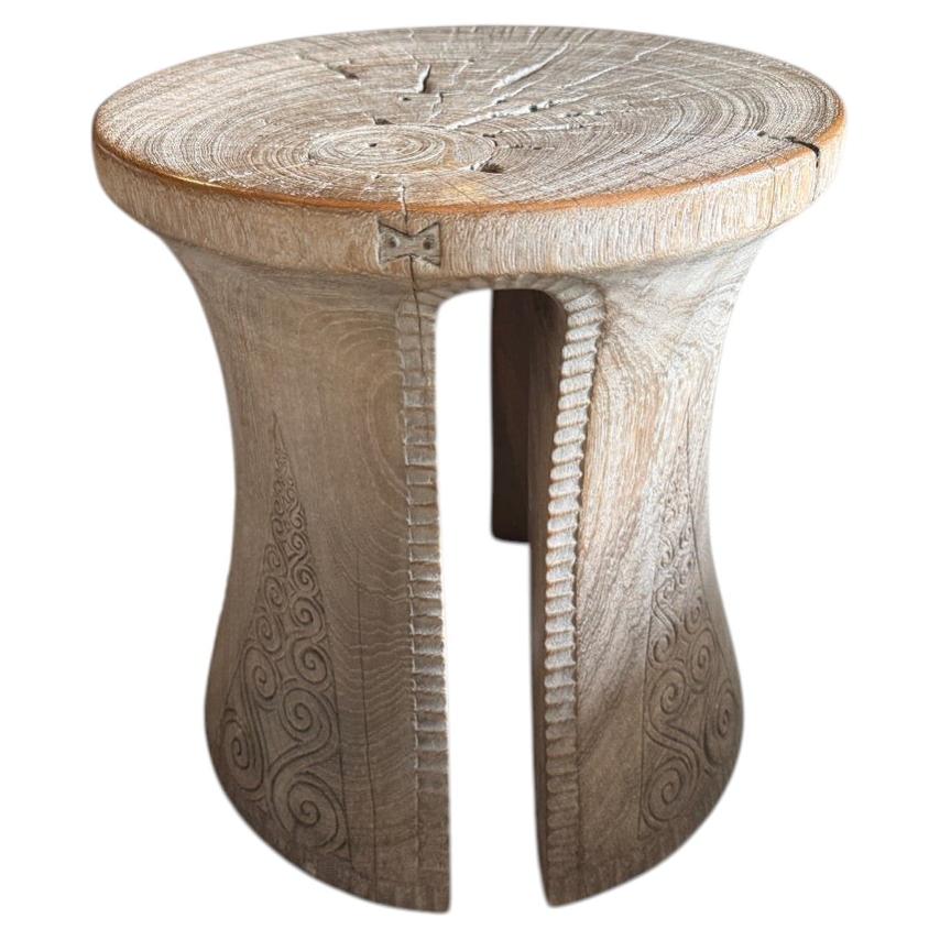 This unique side table or stool is a one-of-a-kind functional sculpture, carved from a single piece of wood to highlight its organic character and structural permanence. Its form fea...
