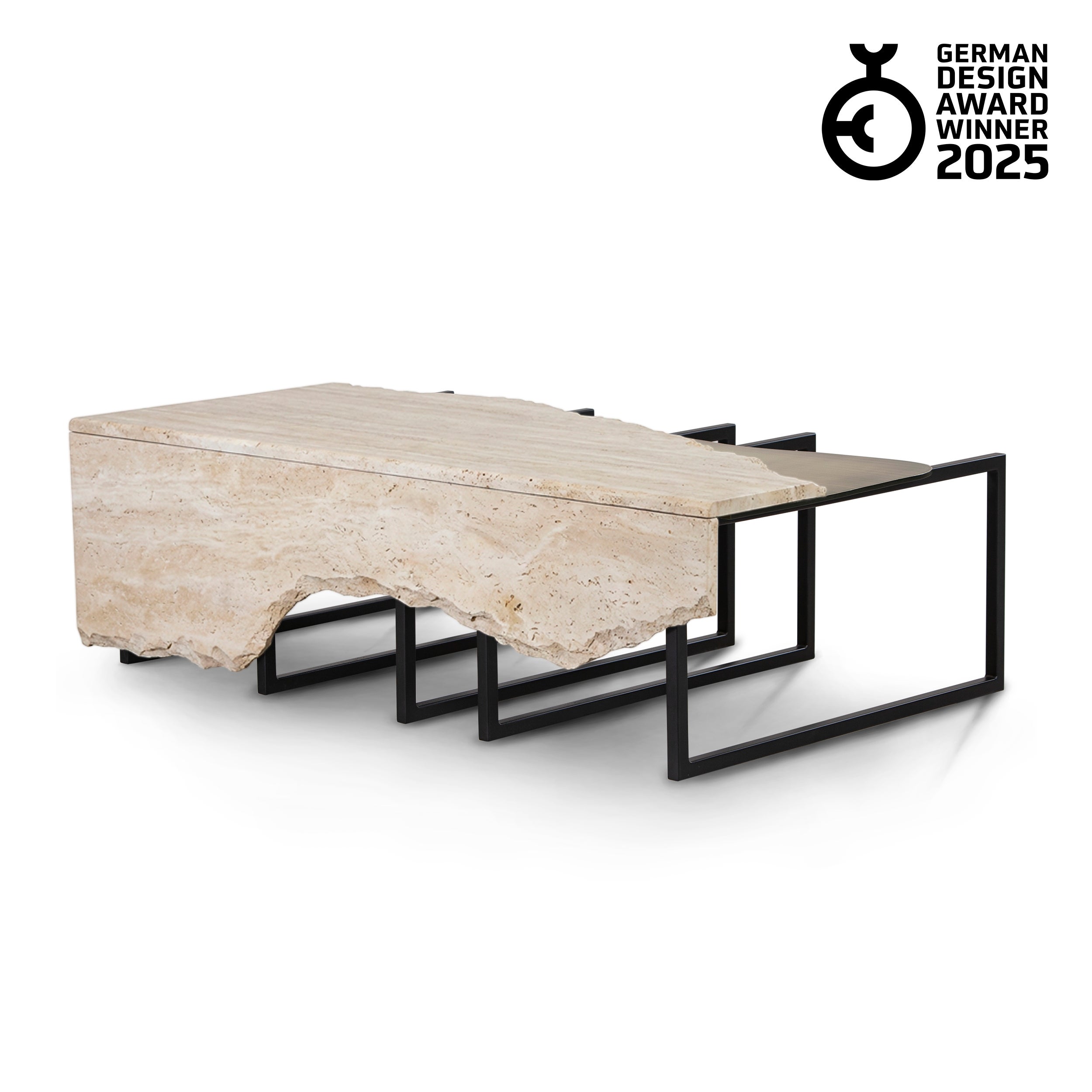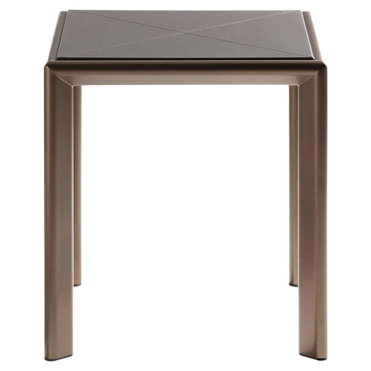 Cantilever Infinity Side Table, stacked leather & brass by Christopher Kreiling