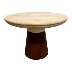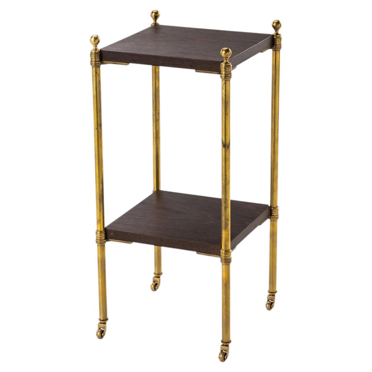 Otto Round Side Table in Medium Walnut with Antique Brass Fittings and Stem
