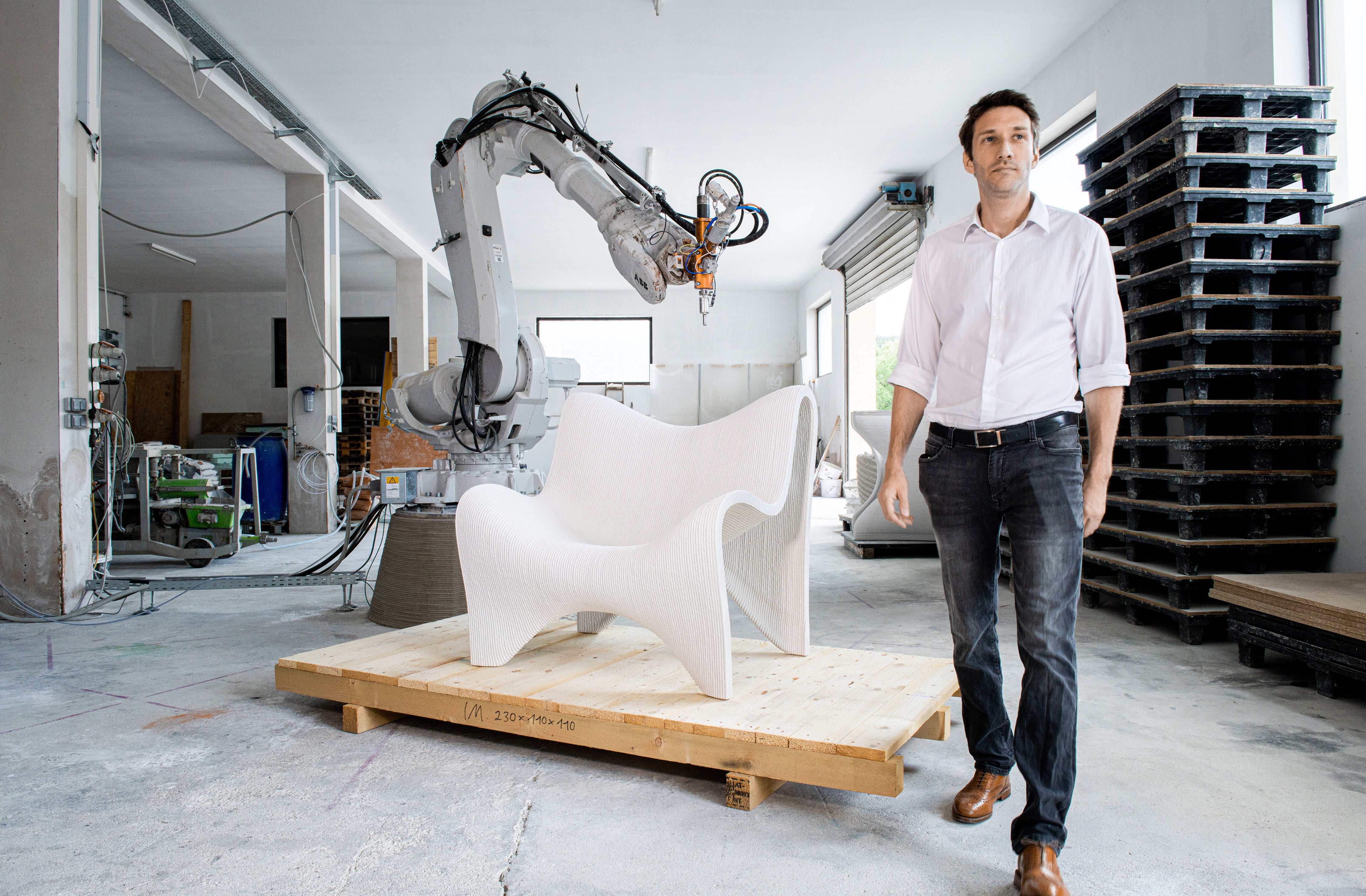 The Metric Stool and Table by Philipp Aduatz, produced in collaboration with Austrian manufacturer incremental3d, demonstrates the fusion of sculptural design with advanced 3D concre...