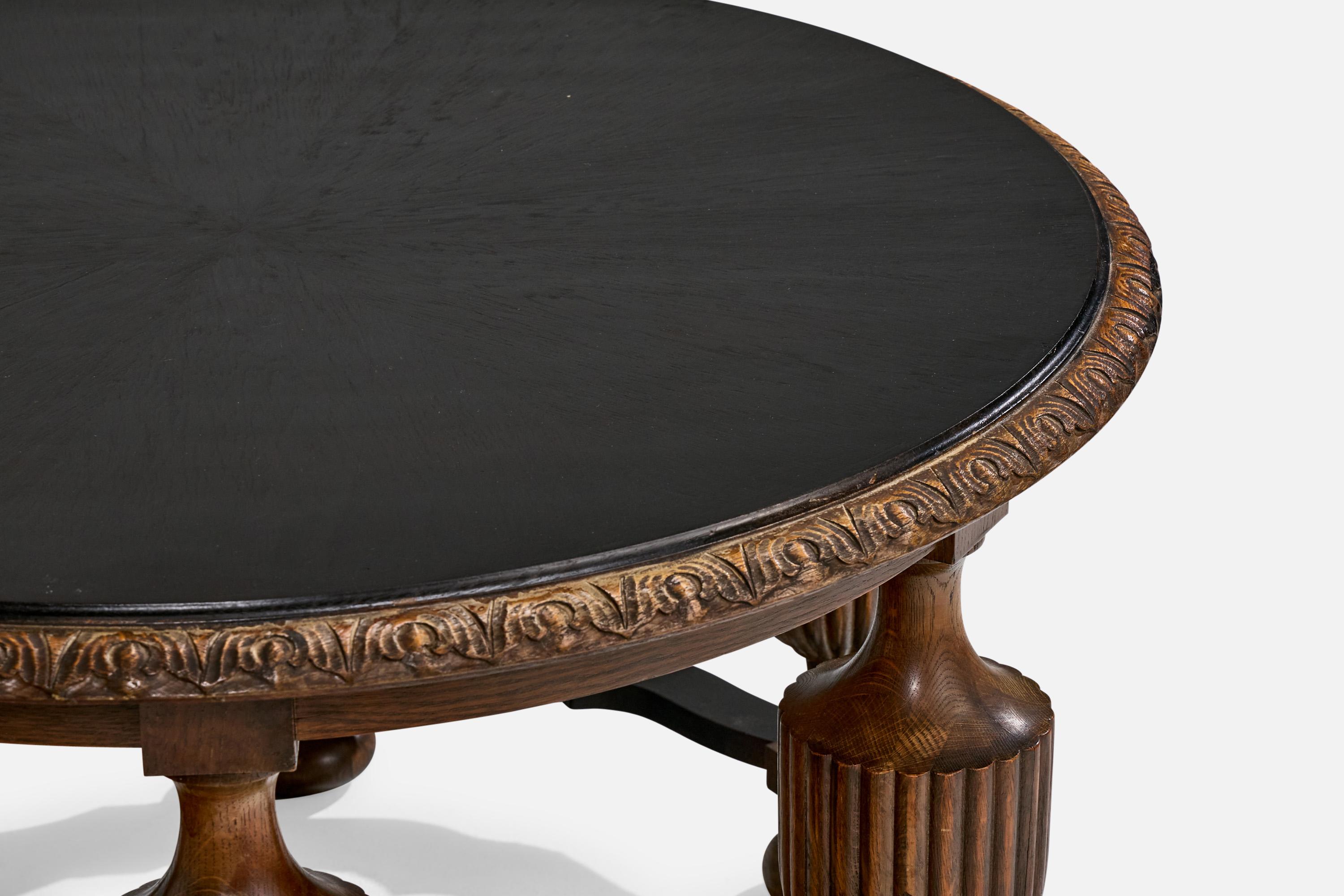 A dark-stained and blackened oak side table or center table designed and produced in Sweden, c. 1930s.