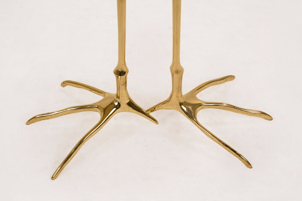 Another Oppenheim piece has become an icon of the art-as-design genre, a category that has currency among art collectors: the Traccia table, a side table with a gold- or silver-leafed wooden top, incised with the shapes of two bird-claw impressions, and a cast-bronze base in the form of stork legs. The Traccia — from the Italian for “track,” as in animal track — was created for the 1939 opening of art dealer Leo Castelli’s first gallery, on the Place Vendôme in Paris. The maker Simon International began producing versions of the Traccia in 1970, and the piece is now made by Cassina. Examples are typically priced between $6,300 and $8,500, depending on condition. As striking and amusing today as when it first appeared, the Traccia is an always-suave addition to a modern art and design collection and a tribute to the humor and ingenuity of a groundbreaking 20th-century artist.