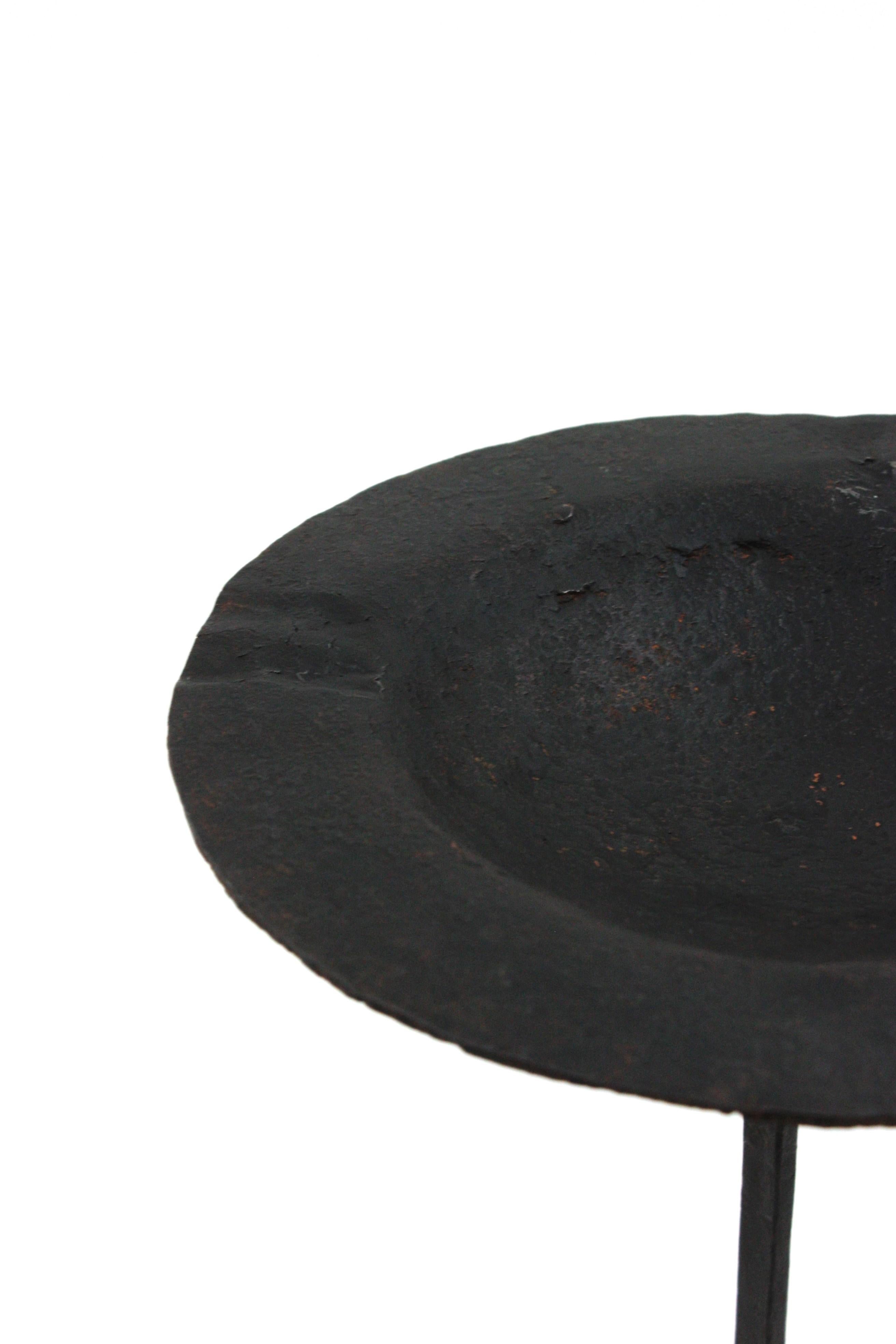 Spanish wrought iron floor ashtray or drinks / cocktails table standing on a tripod base, Spain, 1940s.