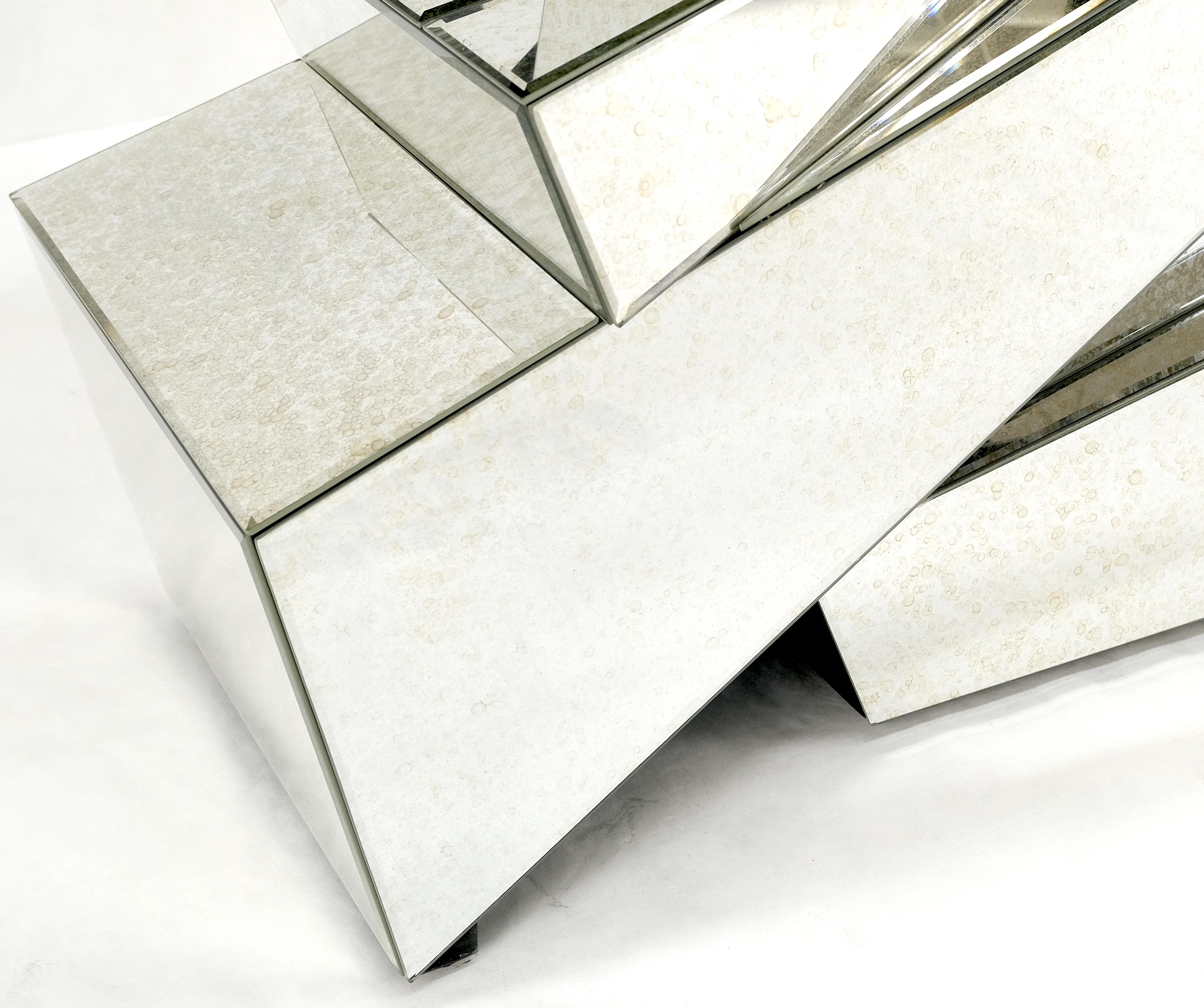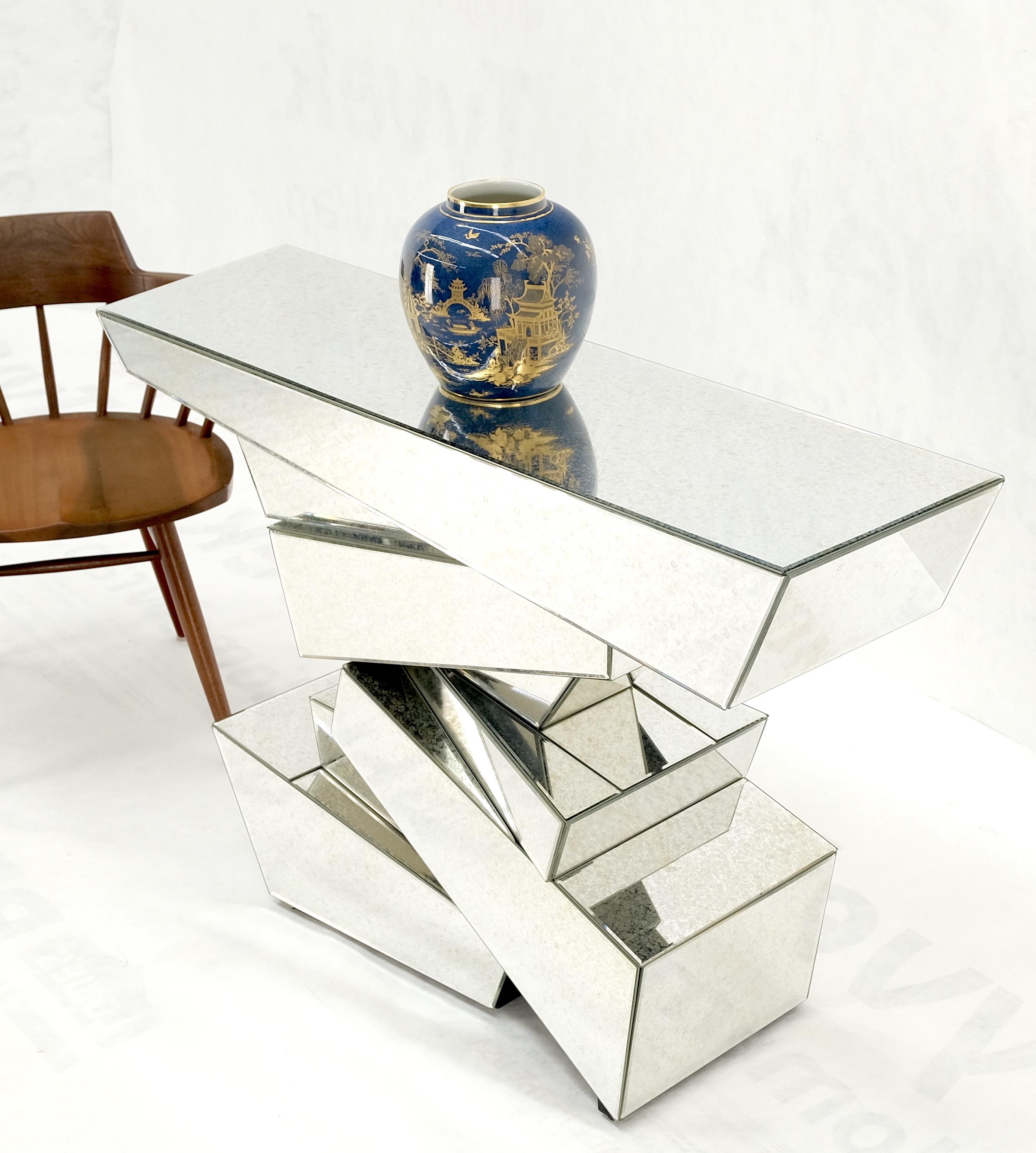 "Stacked" Smoked Mirrors Base Glass Top Mid Century Modern Console Sofa Table
