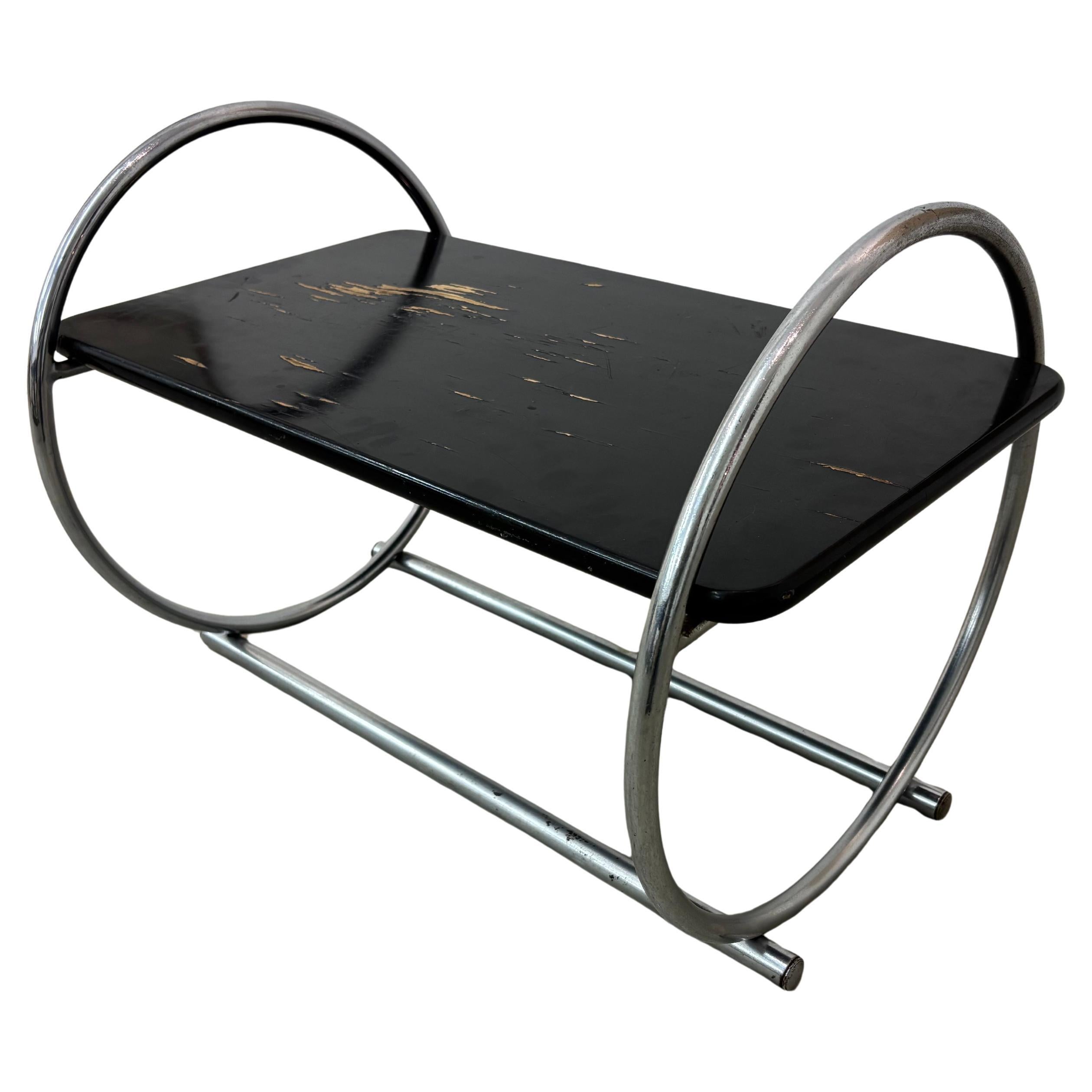 Art Deco Machine Age Tubular Chrome with Black Lacquered Wood Side Table