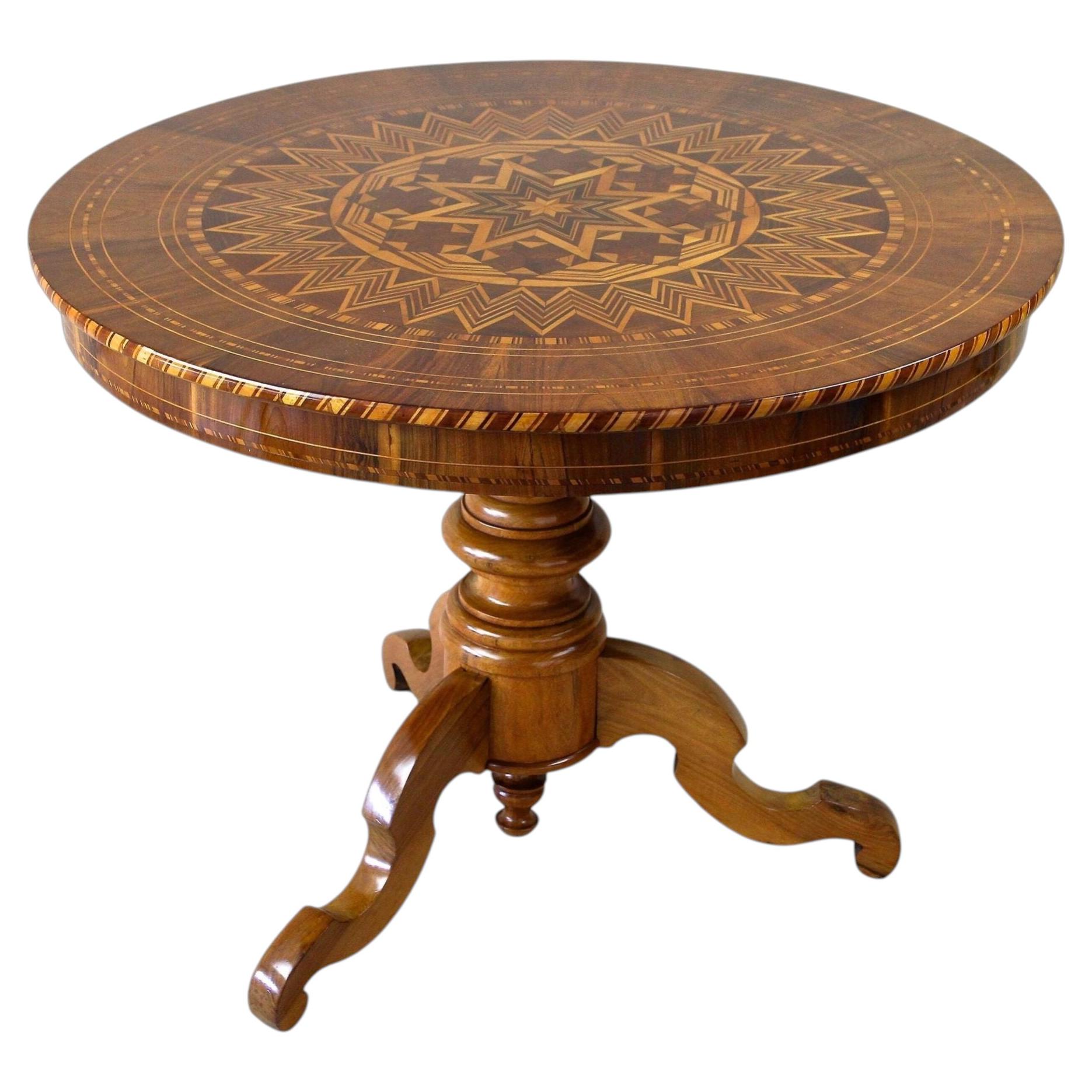 This mid nineteenth century French Napoleon III period marquetry side table is constructed of walnut. Called a "travailleuse" in French, it was originally used as a lady's work table...