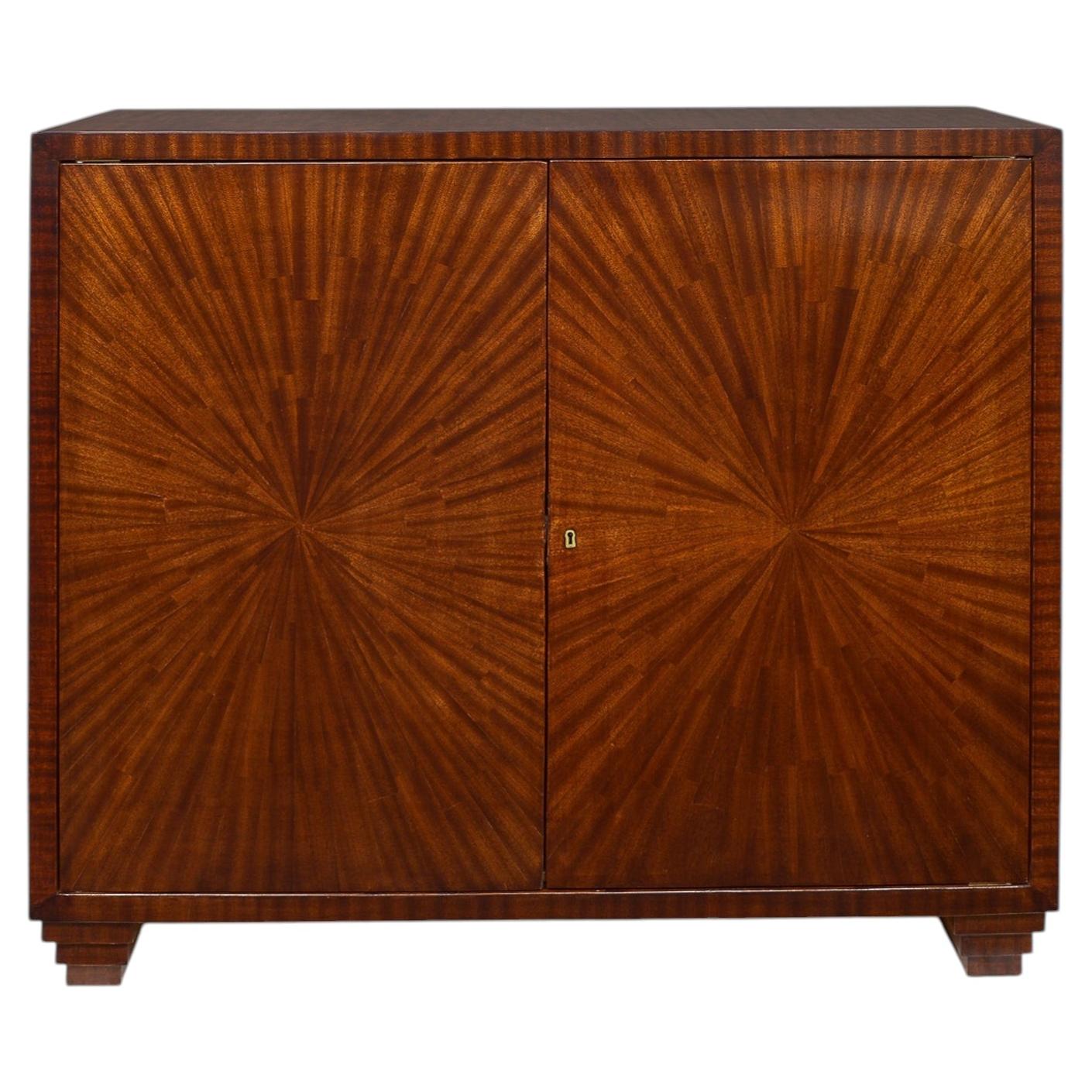 All of Lardin's furniture is classic in form and decor, well crafted and mostly veneered in rosewoods or violet wood. Lardin worked in the taste of the time with geometric patterns, cartouche fields and simulated fluting. Furniture with elaborate inlays such as birds, trophies, urns, landscapes, or flowers and sunburts such as this stunning example appear more rarely.