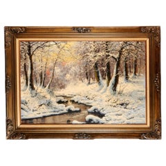 Antique Scandinavian 1930s quiet winter landscape - signed oil painting