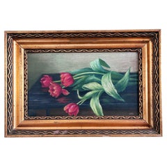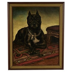 An antique oil painting on canvas depicting a French Bull dog and a terrier dog. It is really striking and refined painted. Signed right under by the female artist ‘Animalier' Alice ...