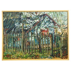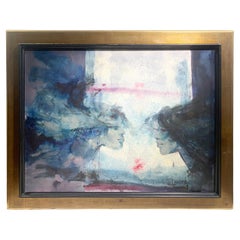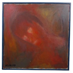 Large Mid-Century Abstract Oil on Burlap Al. Ballatto (active mid-20th century) Circa 1950s–early 1960s Oil on artist-prepared burlap, original wood frame Signed lower right: “Al. Ba...