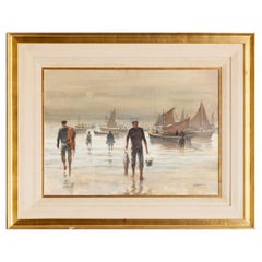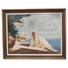 Oil On Canvas Painting Of Stormy Seascape In Newcomb Macklin Style Frame c1923