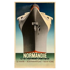 Adolphe Mouron (Cassandre) Normandie lithograph poster print made in Paris, France in 1979. The print shop used Cassandre's original design printed in 1935. The poster promoted the i...