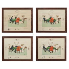 1980s Signed Triptych British Colonial Style Cheetahs On Board Wall Art