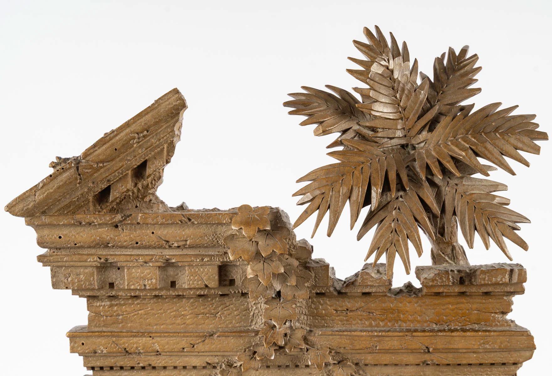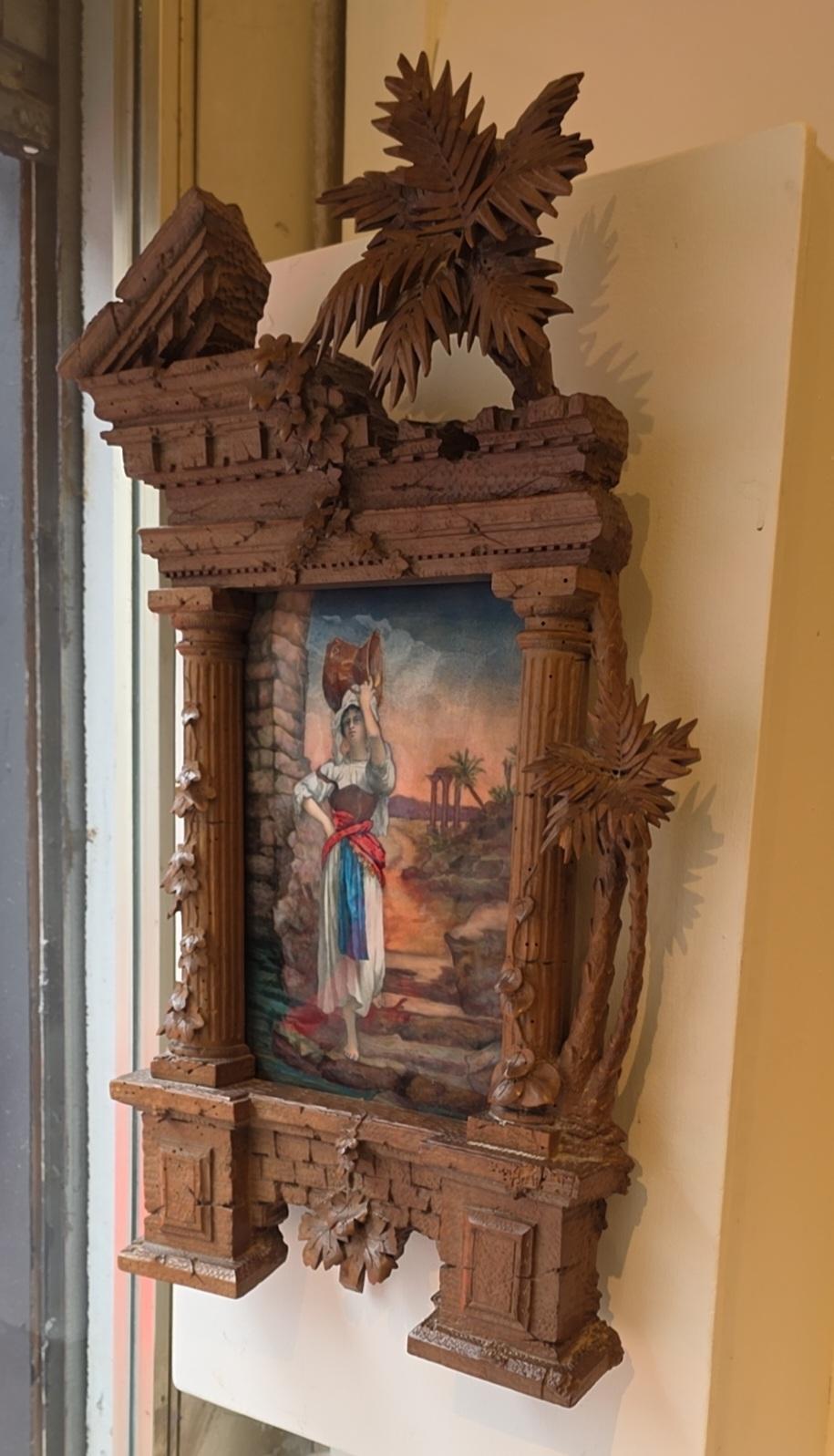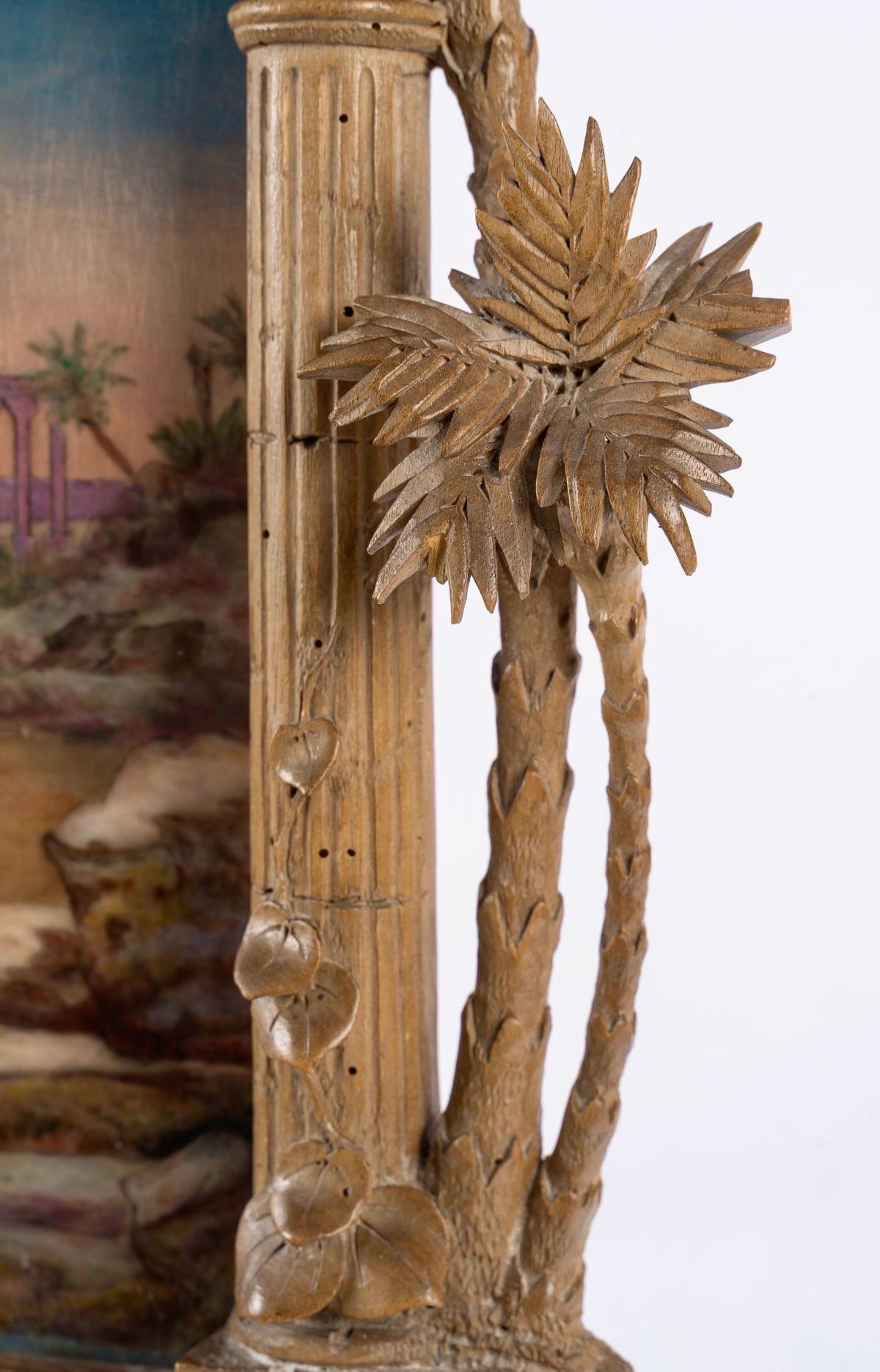 Together with its original and impressive ornate wooden frame also depicting ruins classical architecture with ivy and palm trees growing through he columns.