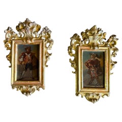 Early 18th Century Italian Baroque Antique Canvas Wall Decorations