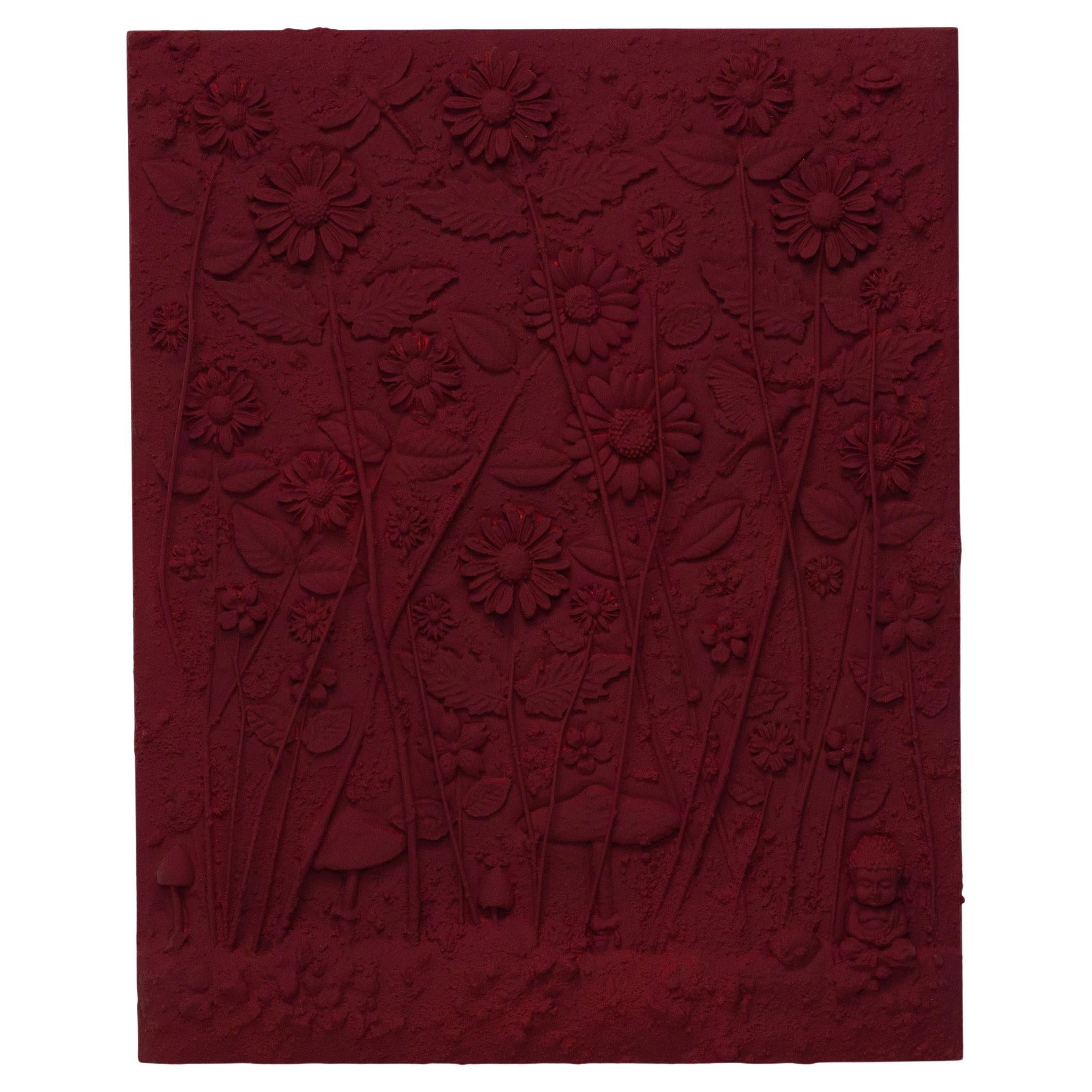 Red Concrete Wall Sculpture by Roger Desserprit, 1984