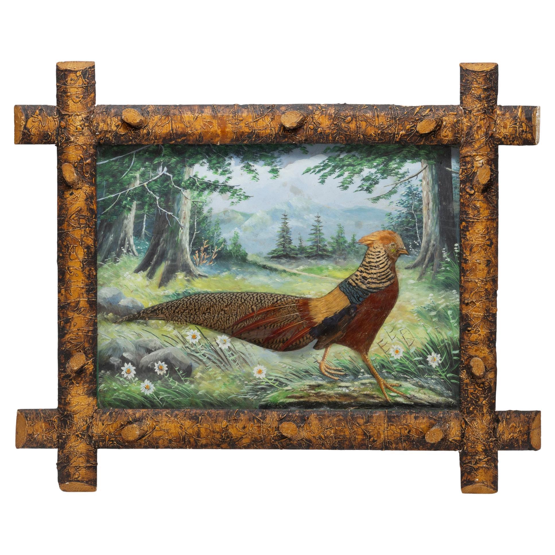 1880s Austrian Folk Art Antique Feathers Wall Decorations