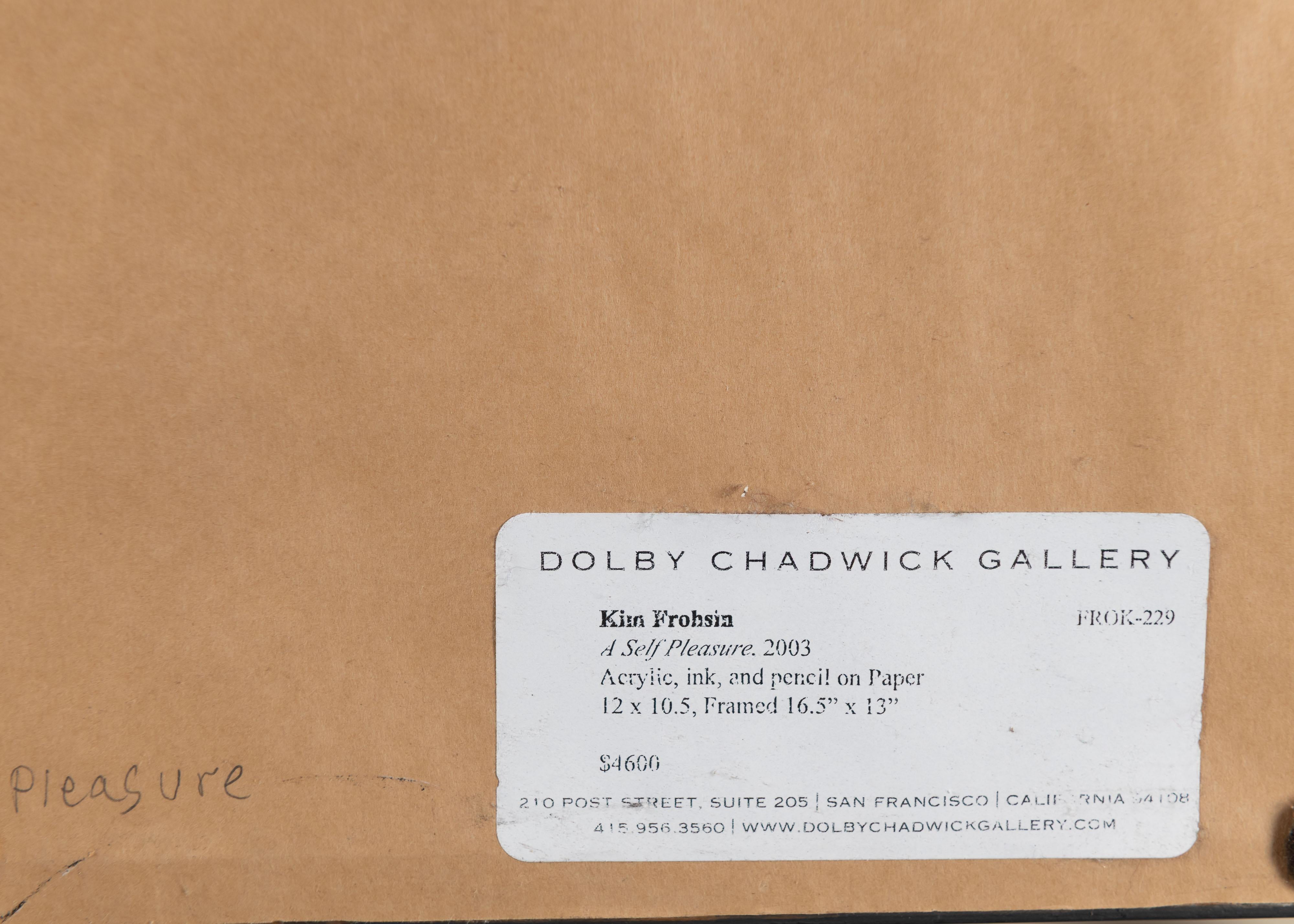 "A Self Pleasure", Acrylic on Paper w/ Gilt Silver Frame, Kim Froshin, USA, 2003