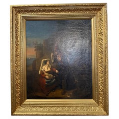 A Late Victorian Signed Oil on Canvas in Giltwood Frame, 19th Century Description: Depicting a ransom scene with a woman and child surrendering a casket of jewelry to a soldier arme...