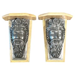 Exceptional Pair of Carved Wall Brackets with Mythological Faces