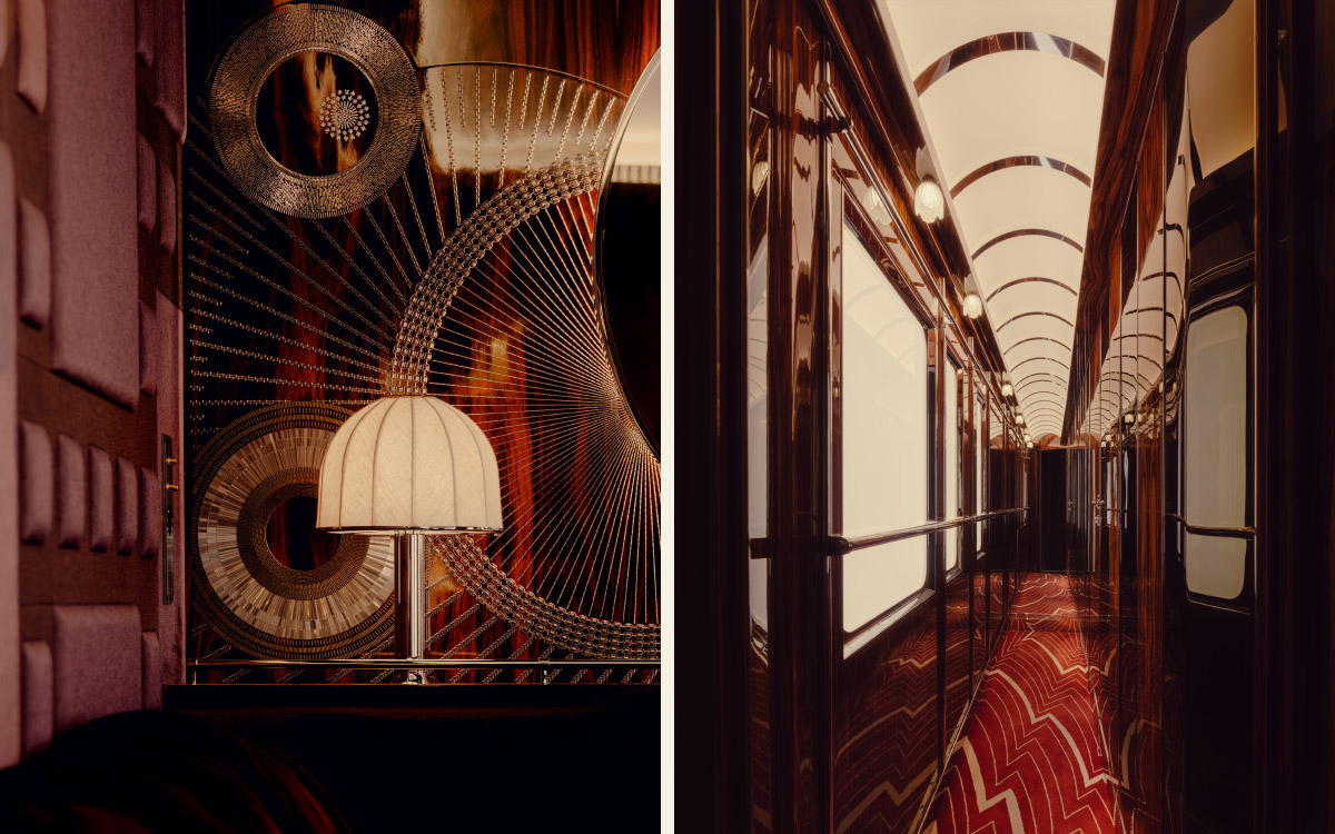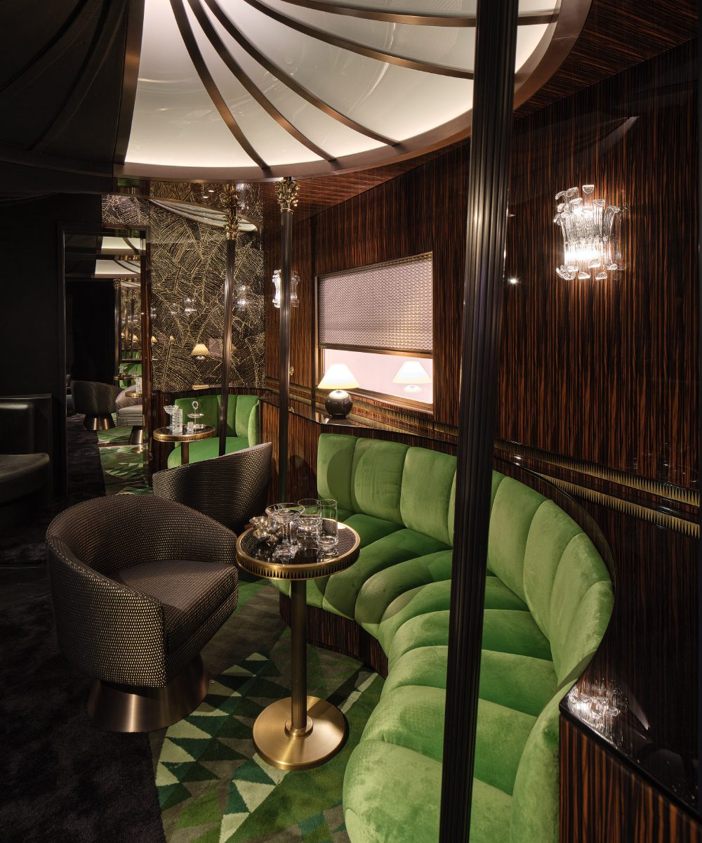 That iconic locomotive line is still in service, and its latest incarnation gets its own section in the Musée des Arts Décoratifs show. Contemporary French architect Maxime d’Angeac has designed the interiors for a number of antique train cars from the 1920s and ’30s recently discovered near the Polish-Belarusian border. The exhibition displays mock-ups of his schemes for the restored carriages, which Orient Express hopes to return to service in 2027.