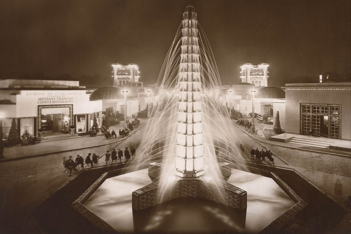 Among the most striking structures were Le Corbusier and Pierre Jeanneret’s Pavillon de l’Esprit Nouveau, decorated with paintings by such artists as Fernand Léger and Pablo Picasso; and Konstantin Melnikov’s audacious USSR pavilion, which featured angular forms, a red facade and huge expanses of glass. Situated right next to the Grand Palais, which was built for the 1900 Paris Exhibition, Robert Mallet-Stevens’s spare, block-like Tourism Pavilion incorporated a 100-foot-high concrete tower.