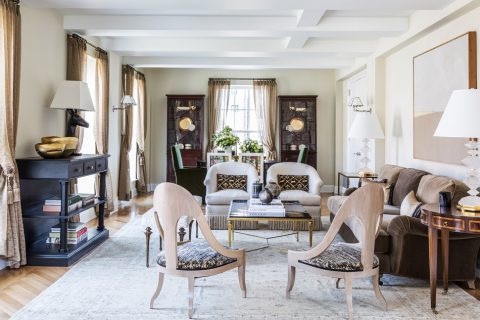 In its place, the couple bought a prewar apartment on East 57th Street. (They are temporarily renting a townhouse. “I’m getting very friendly with Sheetrock. But I know it’s temporary, so we have just short conversations,” he quips.) They may have downsized, but they did not sacrifice drama in their next home. “It has a twist,” Molyneux says of the 57th Street apartment, one that includes double-height ceilings. As for its decor, “I still haven’t even started, but I know exactly what it’s going to be,” he says.