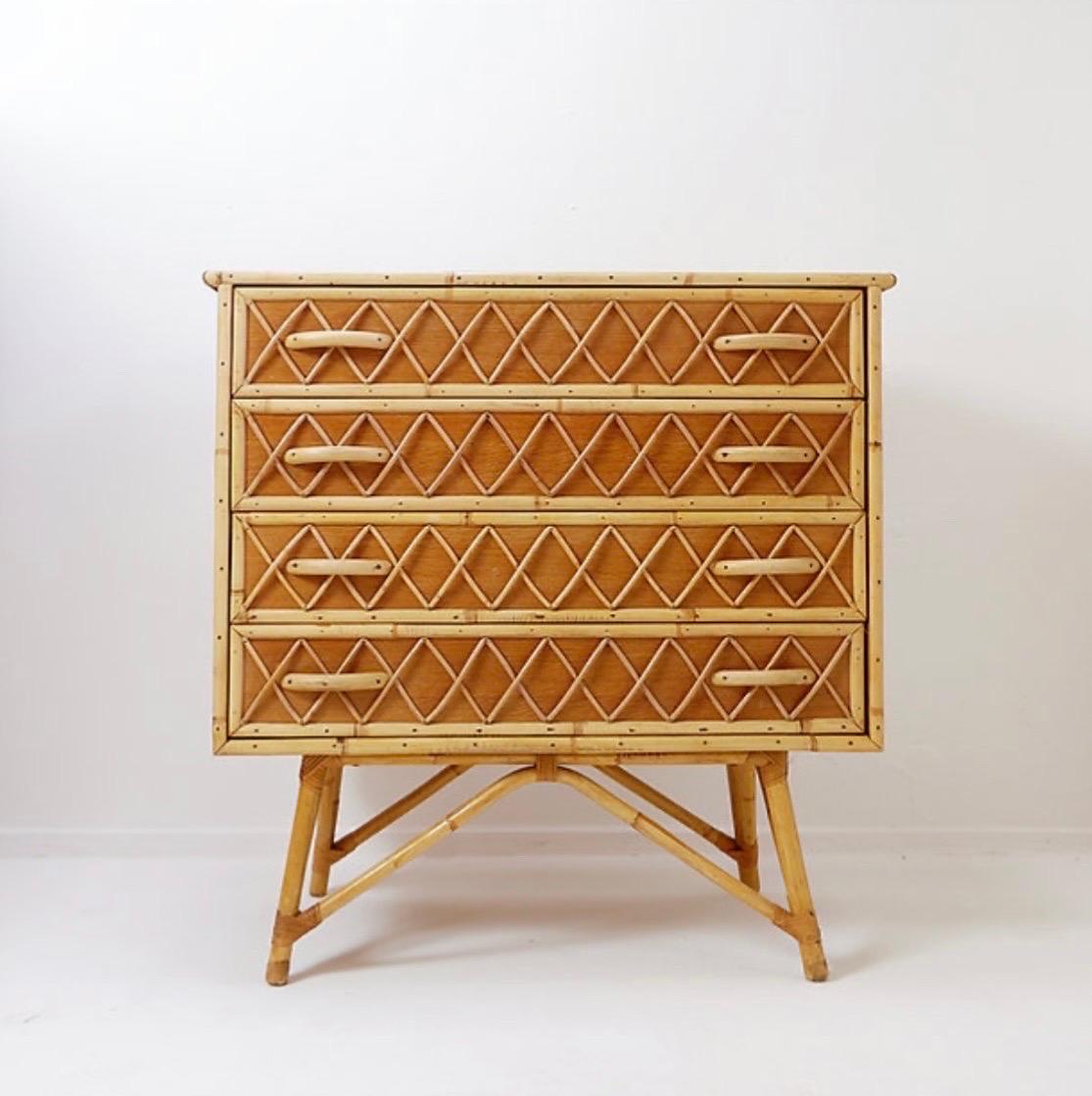 Articoli simili a Cassettiera a 4 cassetti in vimini e rattan di bambù vintage