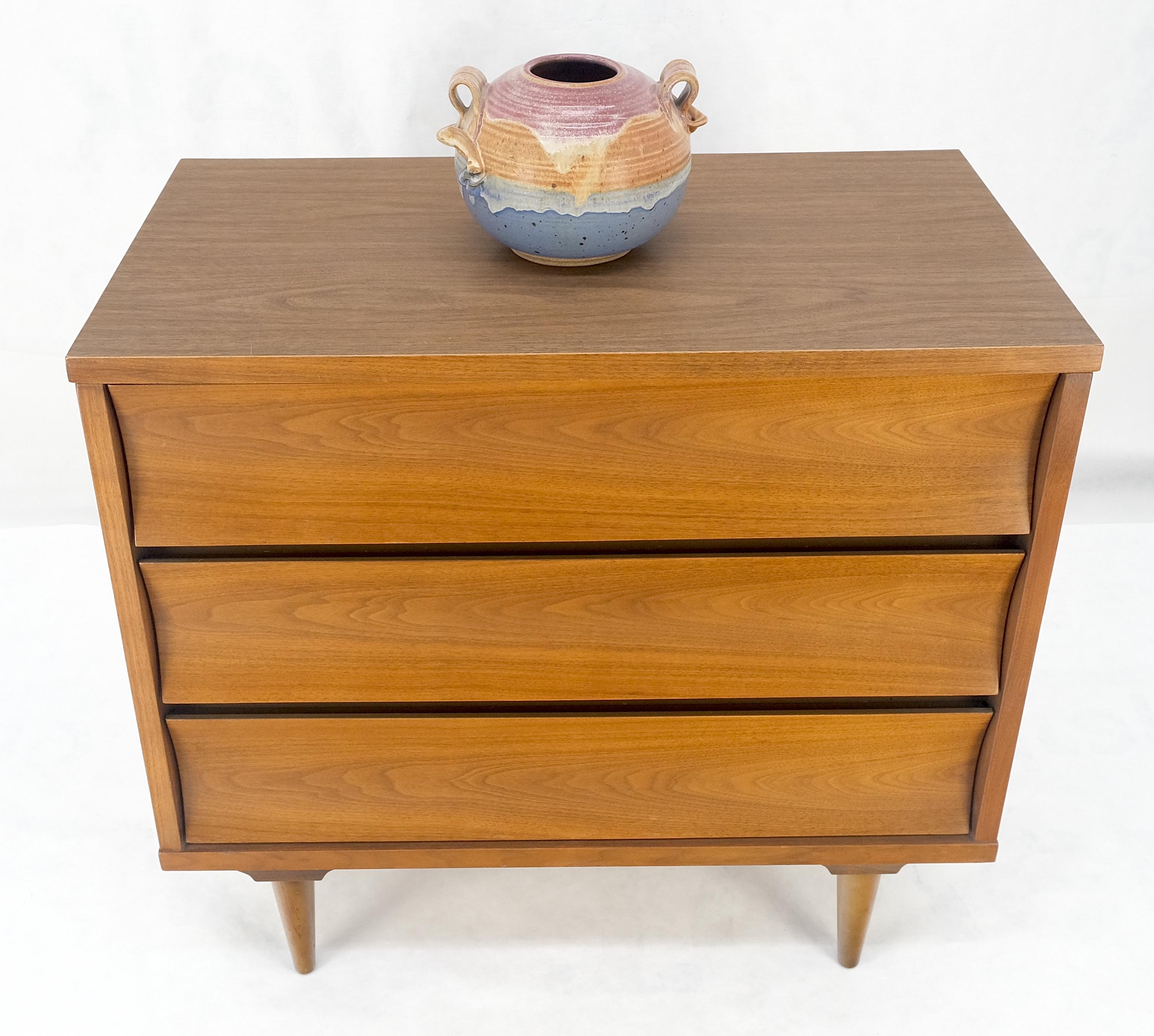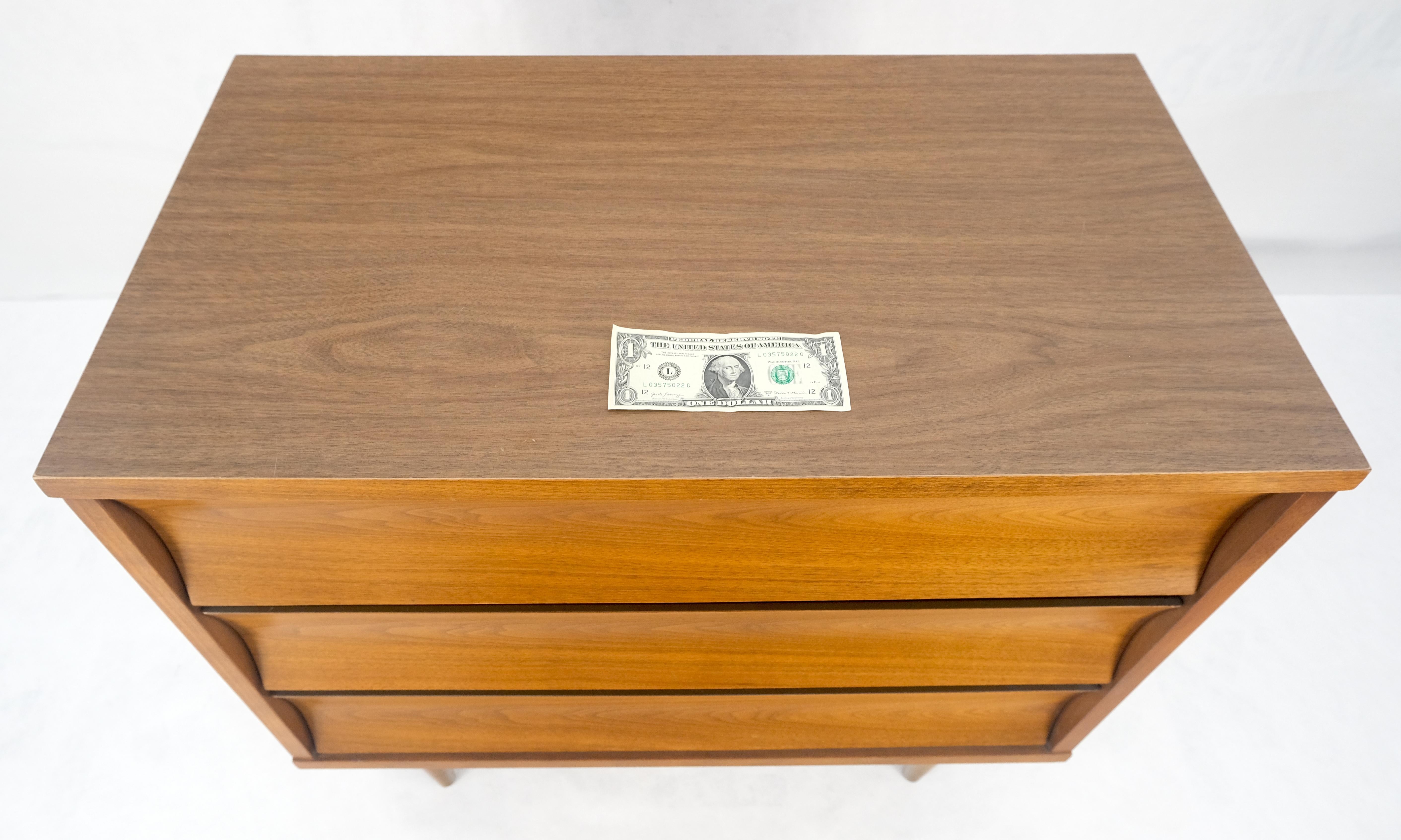 Cassettiera compatta a 3 cassetti in noce concavi del Mid Century Bachelor Chest