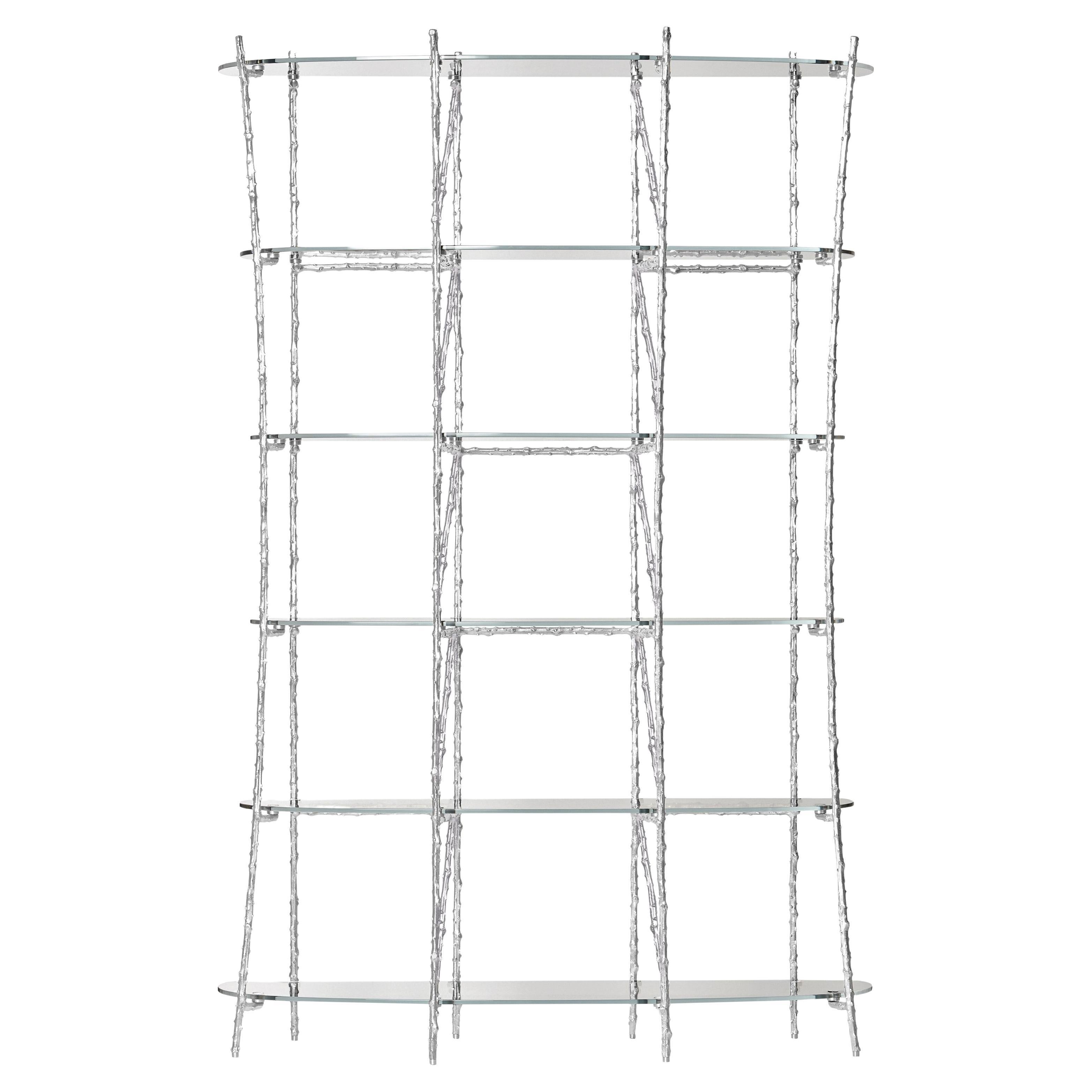 La libreria Babel è un'opera di grande impatto grazie ai suoi ripiani cavi con finitura lucida spazzolata e alla struttura in ottone con finitura in ottone brunito. Offrendo ampio sp...