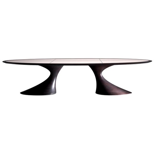 In linea con l'eredità secolare dell'ebanisteria europea, ogni mobile di Annibale Colombo è realizzato in Italia utilizzando solo legno di altissima qualità e tessuti pregiati. I tavoli da pranzo del marchio, le poltrone e le credenze - disegnati da Giovanna Azzarello, Luciano Colombo, A. Manzoni e altri - mostrano forme uniche e attingono al meglio dell'arredamento moderno di metà secolo.