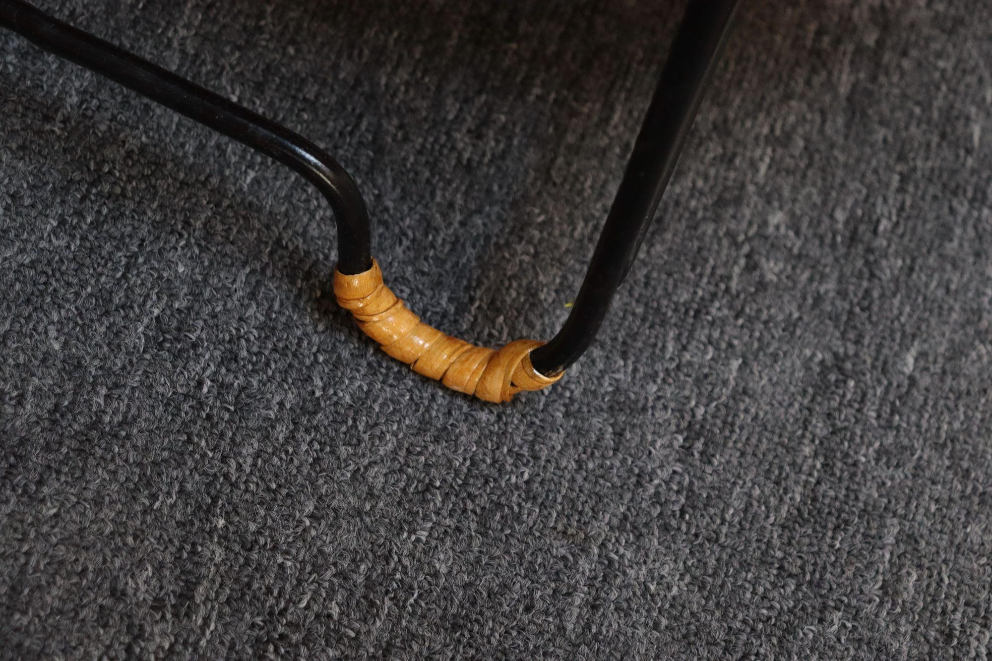 Portacestini in rattan francese con gambe in ferro Midcentury