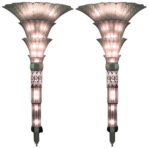 Durante la Grande Depressione, nonostante le turbolenze economiche dell'epoca, i disegni di Sabino per lampade, vasi e statuette erano molto richiesti. Tra le sue opere scultoree sono delle grandi statuette di pesce, create in edizione limitata nel 1931, due delle quali sono state acquistate da Maurice Chevalier e Josephine Baker. Come la moda, la grafica e il design d'interni francesi del periodo tra le due guerre, i lampadari Sabino rimangono eternamente chic. Molti dei suoi pezzi personalizzati sono enormi, come quelli creati per la SS Île de France, nel 1927, e per il Grand Salon della SS Normandie, nel 1935. A prescindere dalle dimensioni, tuttavia, uno dei loro tratti distintivi è che i componenti in vetro sono al centro del design complessivo, anziché essere solo ornamentali. Questo apparecchio in vetro stampato quintessenzialmente Art Deco, con la sua forma geometrica e il suo motivo floreale, cattura perfettamente il mix di sottigliezza e originalità che caratterizza i migliori esempi di vetro artistico Sabino.