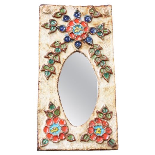Portacandele francese d'epoca a motivi floreali in ceramica di La Roue, Vallauris, Francia (circa anni '60). Un affascinante pezzo decorativo con dettagli rustici e colorati. La ceramica è in scala ridotta ed è stata progettata per assomigliare alla fontana di un piccolo villaggio. In buone condizioni generali, anche se manca una foglia di smalto (vedi foto) che potrebbe essere un difetto di produzione o un'altra perdita. Come spesso accade con La Roue, il pezzo non è firmato ma è indubbiamente opera del loro Studio. Goditi le foto che accompagnano questo annuncio. Un video può essere fornito su richiesta.