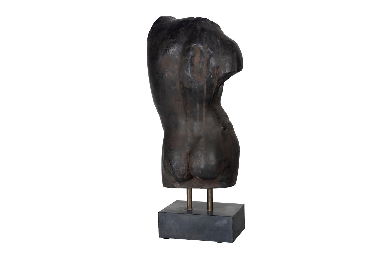 Scultura moderna francese in gesso bronzato di un torso maschile nudo