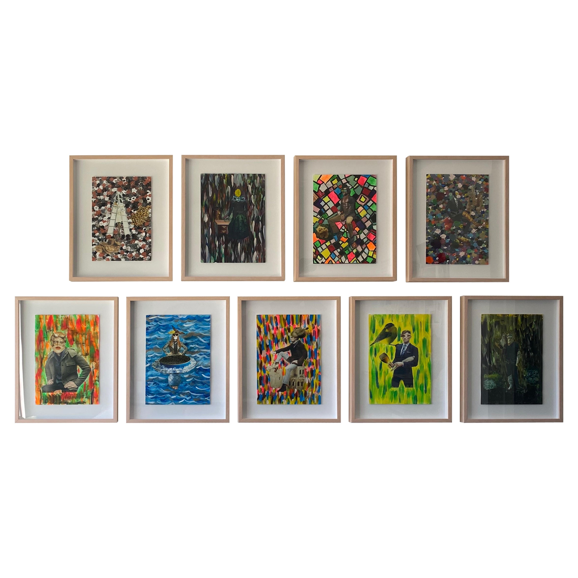 Collage, Pittura Multicolore Set di 9, 21° secolo di Mattia Biagi