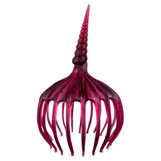 Modello in scala di fiori selvatici, scultura astratta moderna in resina viola di Karen Atta