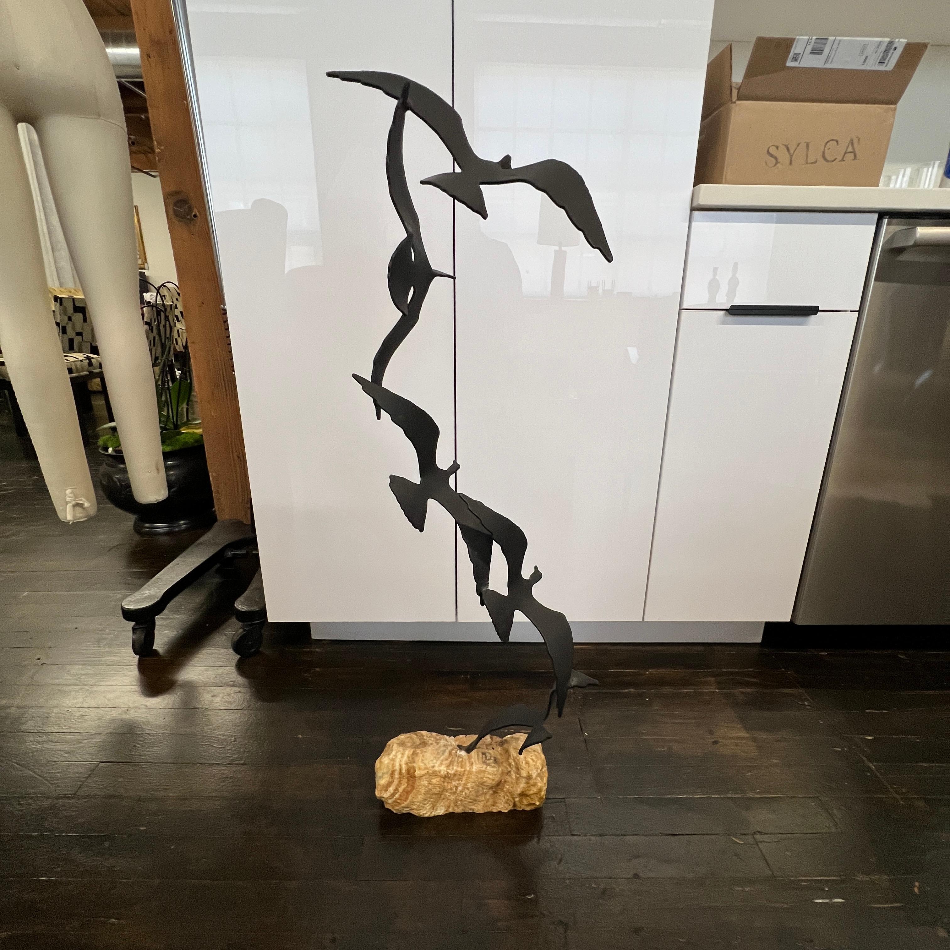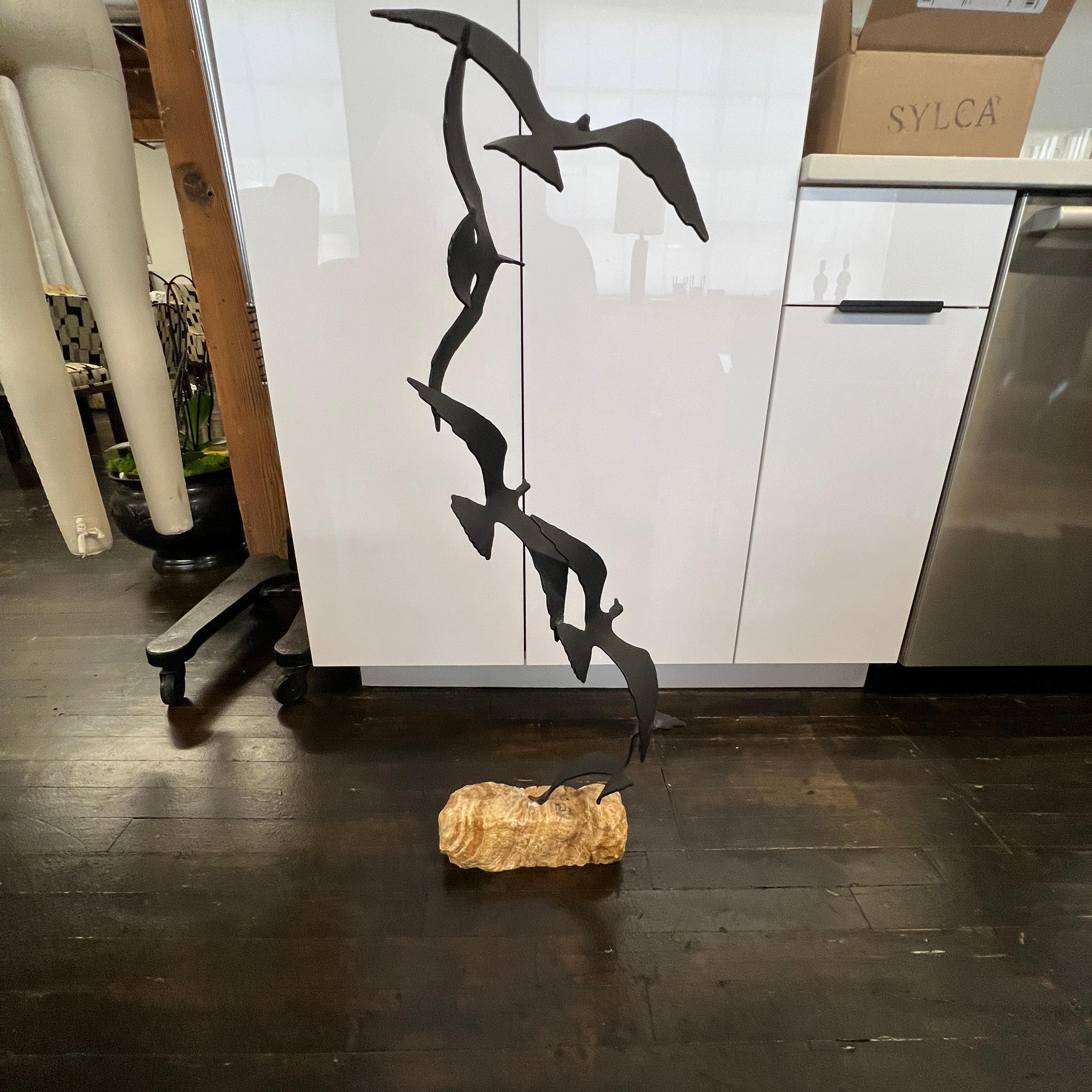 Bijan Bahar (iraniano/americano, 1939-2013) gruppo di gabbiani in ferro saldato montati su una base di campioni minerali. Un po' cinetico.