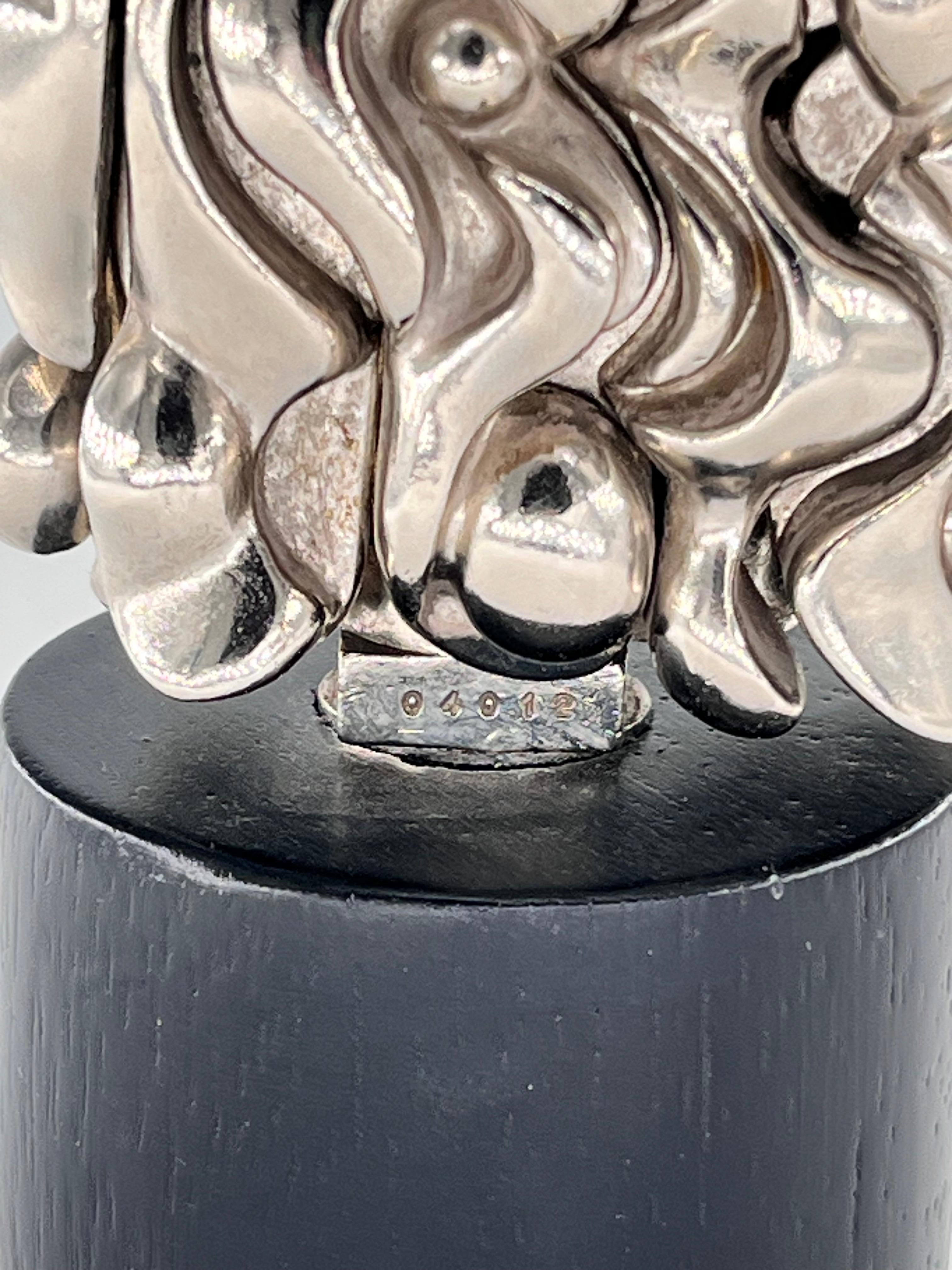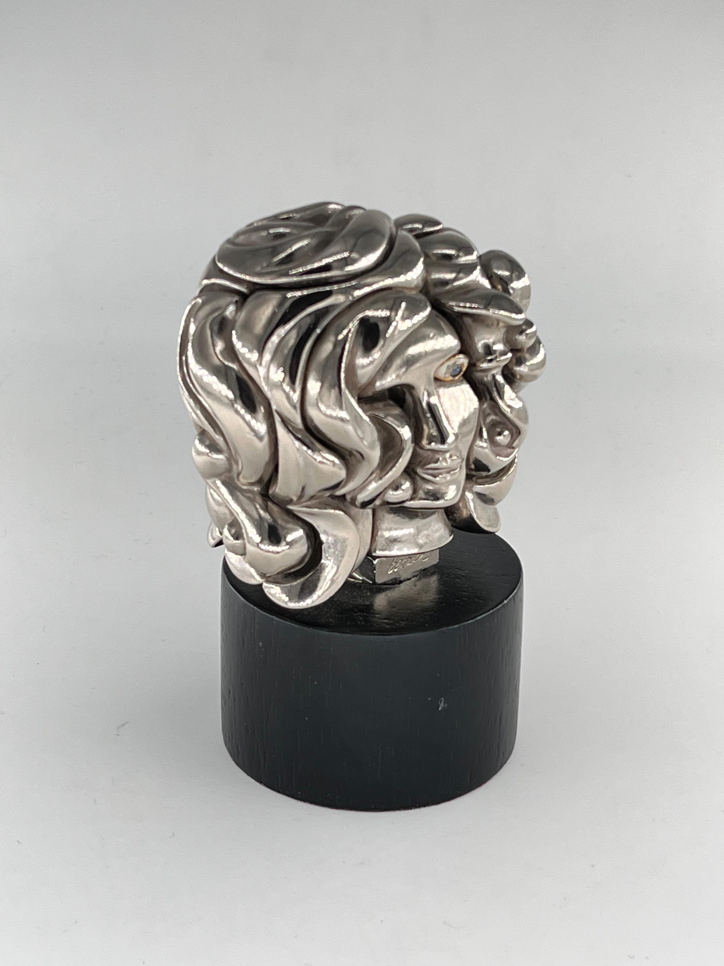 Scultura in acciaio e metallo inossidabile lucido degli anni '80 firmata da Rosette Bir. Diametro della base: 13 cm.