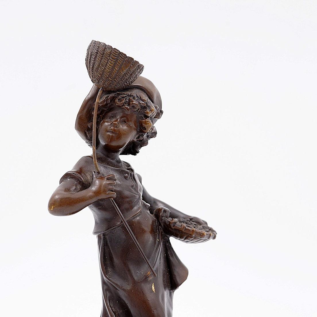 Ragazzo in bronzo con farfalla di August Moreau, Francia, fine XIX secolo