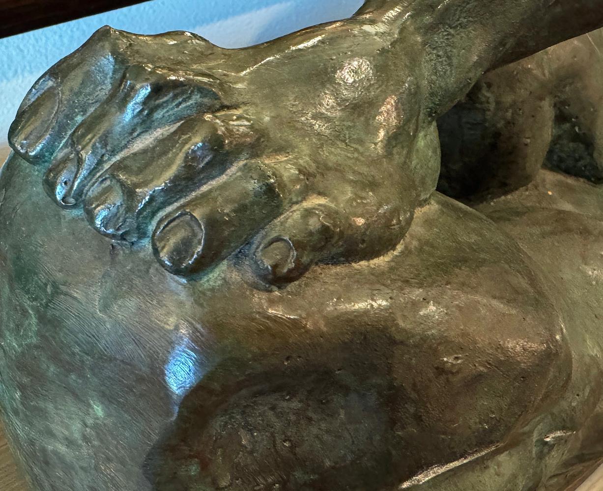 "Stone Lifter", audace e monumentale scultura in bronzo Art Deco con nudo maschile