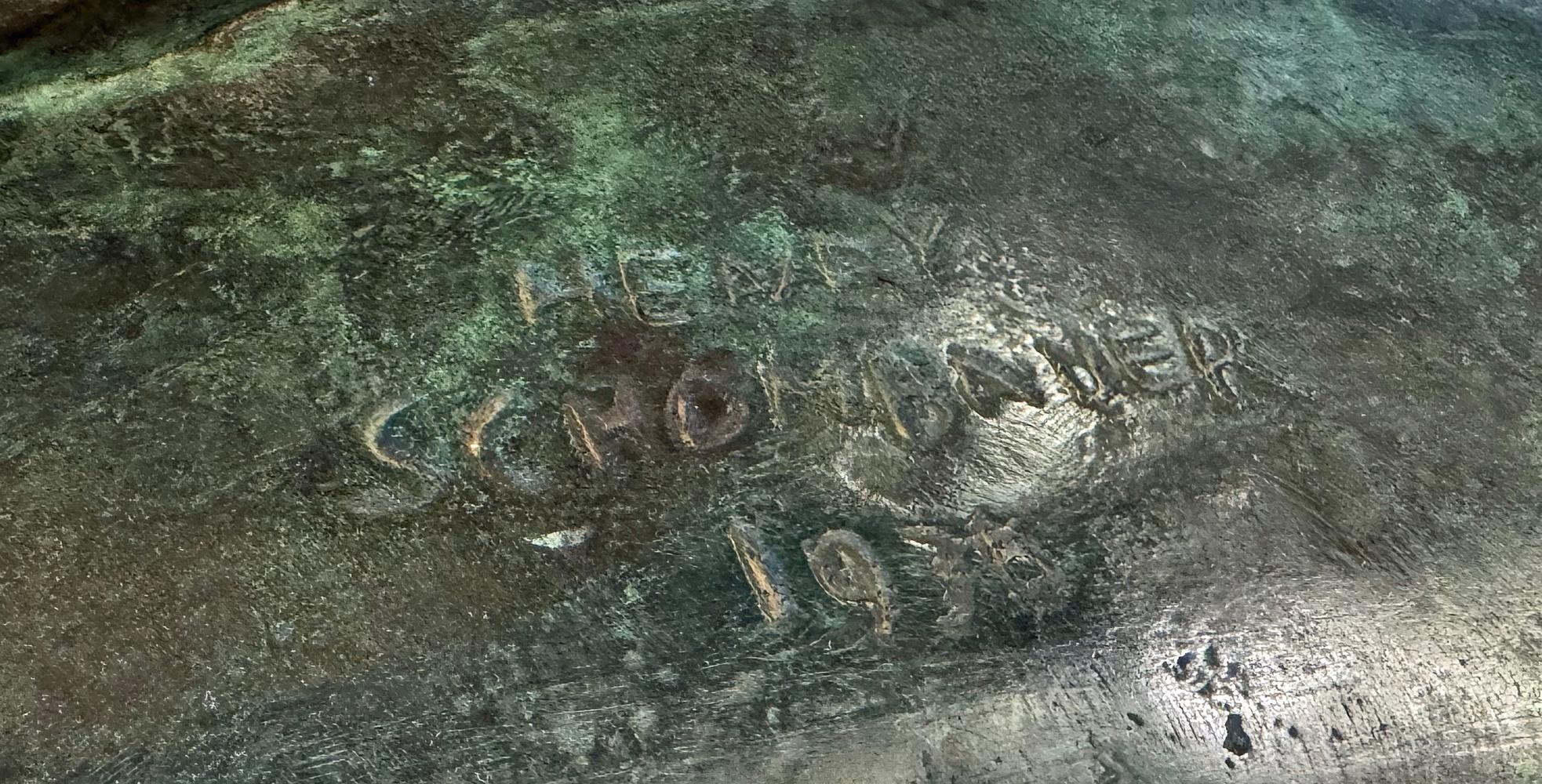 Grande, audace e provocatoria, questa rarissima scultura in bronzo raffigura una potente e muscolosa figura maschile nuda che si sforza di sollevare un'enorme roccia, con le gambe divaricate e il corpo teso per raggiungere l'impossibile. È stata scolpita dallo scultore ungherese-americano Henry Schoenbauer e, a nostra conoscenza, solo uno o due esempi di questa scultura sono stati fusi in bronzo in questa scala. Tra il 1910 e il 1920, molti scultori crearono una versione dell'"Uomo contro la Natura", in genere una figura maschile esageratamente forte, spesso nuda, che lavora per sollevare una roccia, tirare una corda o lavorare contro probabilità impossibili. Il "sollevatore di pietre" di Schoenbauer è forse il più potente ed esagerato del suo genere. Dopo essere immigrato in America dall'Ungheria, Schoenbauer studiò alla Pennsylvania Academy of Fine Arts e in seguito espose all'Art Institute di Chicago e al Whitney Museum of American Art. Questo esemplare presenta una bella patina scura evidenziata da aree di finitura verdastra. La scultura è firmata due volte e datata 1936.