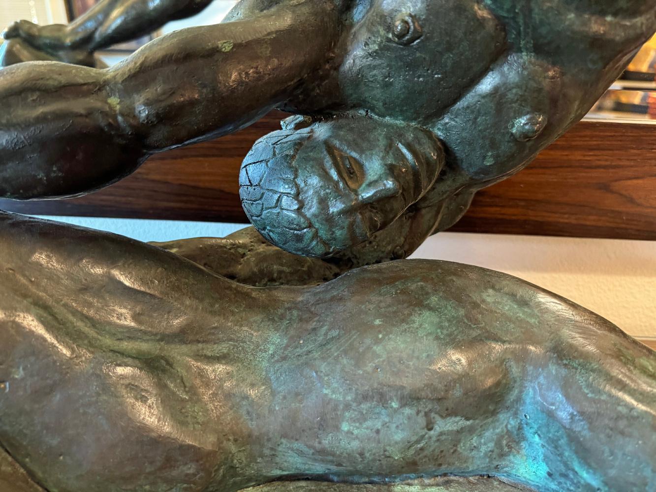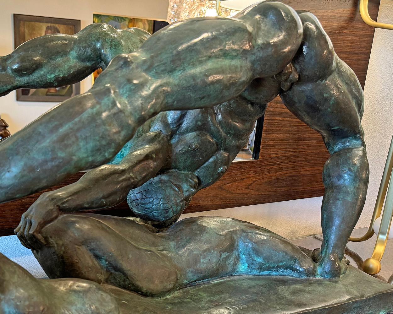 "Down for the Count", straordinario e raro bronzo con pugili maschi nudi di Howard