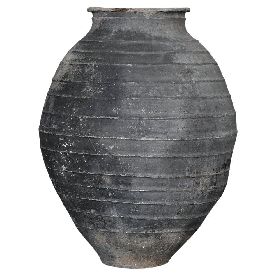 Un grande vaso portoghese primitivo in terracotta nera dell'inizio del 18° secolo Wabi Sabi