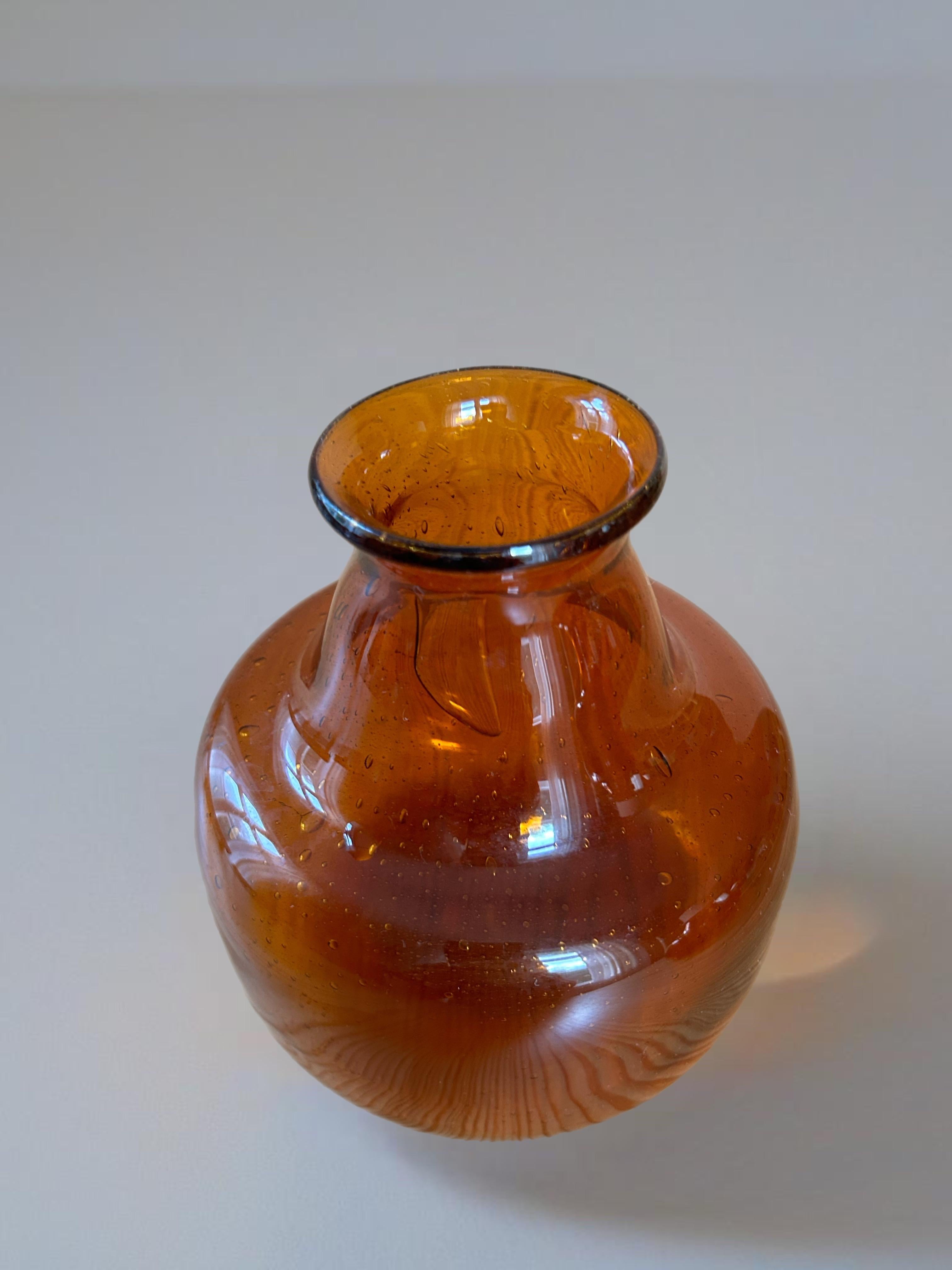 Vaso di vetro soffiato ambrato vintage di Boho