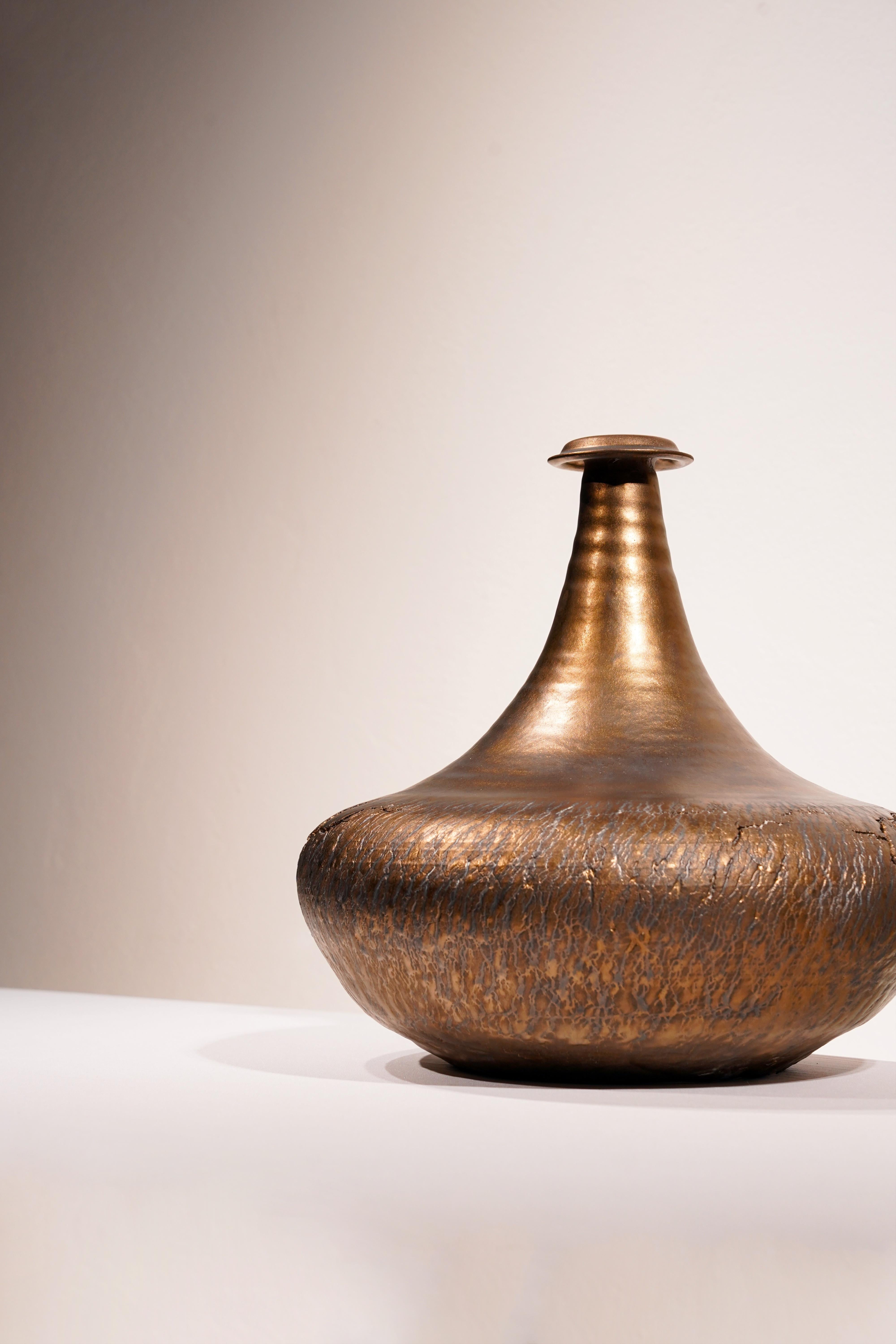 Con il suo collo elegante e stretto e la sua curvatura raffinata, il pezzo rappresenta un equilibrio tra audacia e grazia. "Forged in Flame" è una meditazione su come la bellezza nasca spesso dalla prova e su come ciò che ci segna ci definisce. Arriva in perfette condizioni e include un Certificato di Autenticità autenticato, che ne sottolinea il valore e l'unicità. Un'aggiunta potente a qualsiasi collezione, che parla della bellezza duratura della trasformazione.