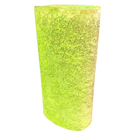 Vaso in ceramica a stelo cilindrico di Otto Natzler (1908-2007) realizzato nel 1990. Il vaso in gres presenta una smaltatura distintiva sulla superficie nera, ottenuta con una cottura a riduzione di crateri metallici di rame. La superficie, di conseguenza, appare simile a quella vulcanica, con una consistenza crostosa unica nel suo genere e macchie di iridescenza dorata e arancione. All'interno del piede del gambo, il pezzo è firmato e datato sul lato inferiore "Otto Natzler 1990" con impresso il codice dell'artista "ON VIII" e il numero di archivio "X575". Il vaso si apprezza al meglio sotto una luce angolata e fioca, sotto la quale lo smalto scintillante rivela la sua sottile e magica bellezza.
